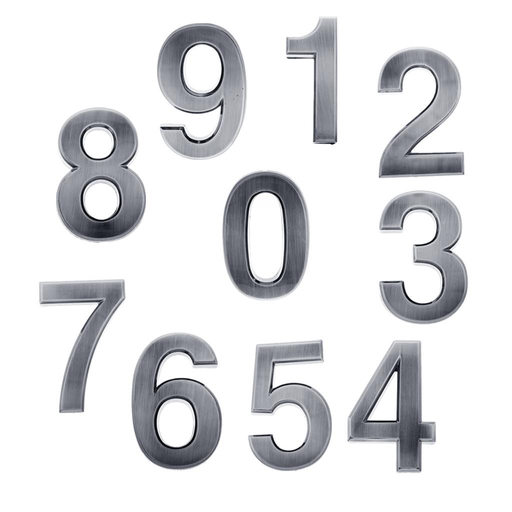 Silver Plastic Self-Adhesive Door Number Sign Sticky Numeric Digit Number 0