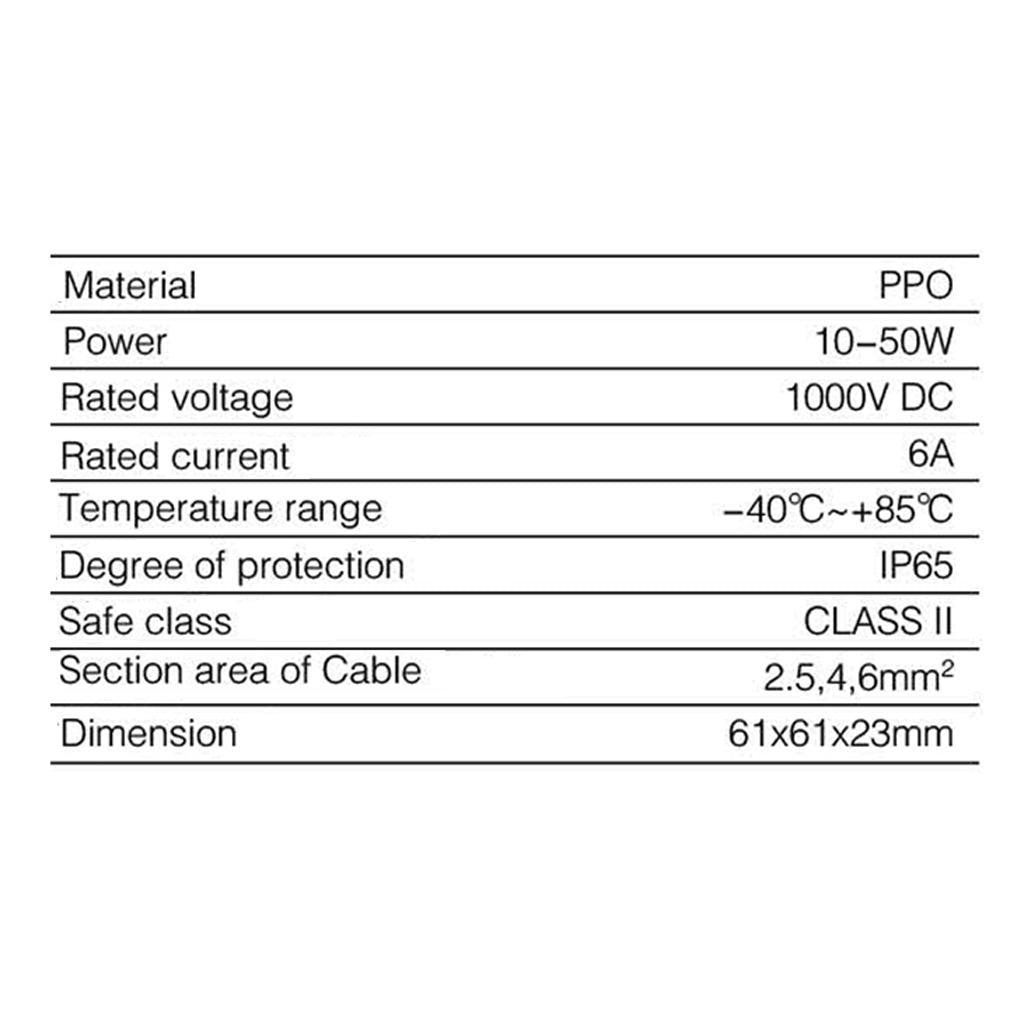Solar Junction Box PV/Photovoltaic Connector with 1 Diode for Solar Panel 30W-80W 6A