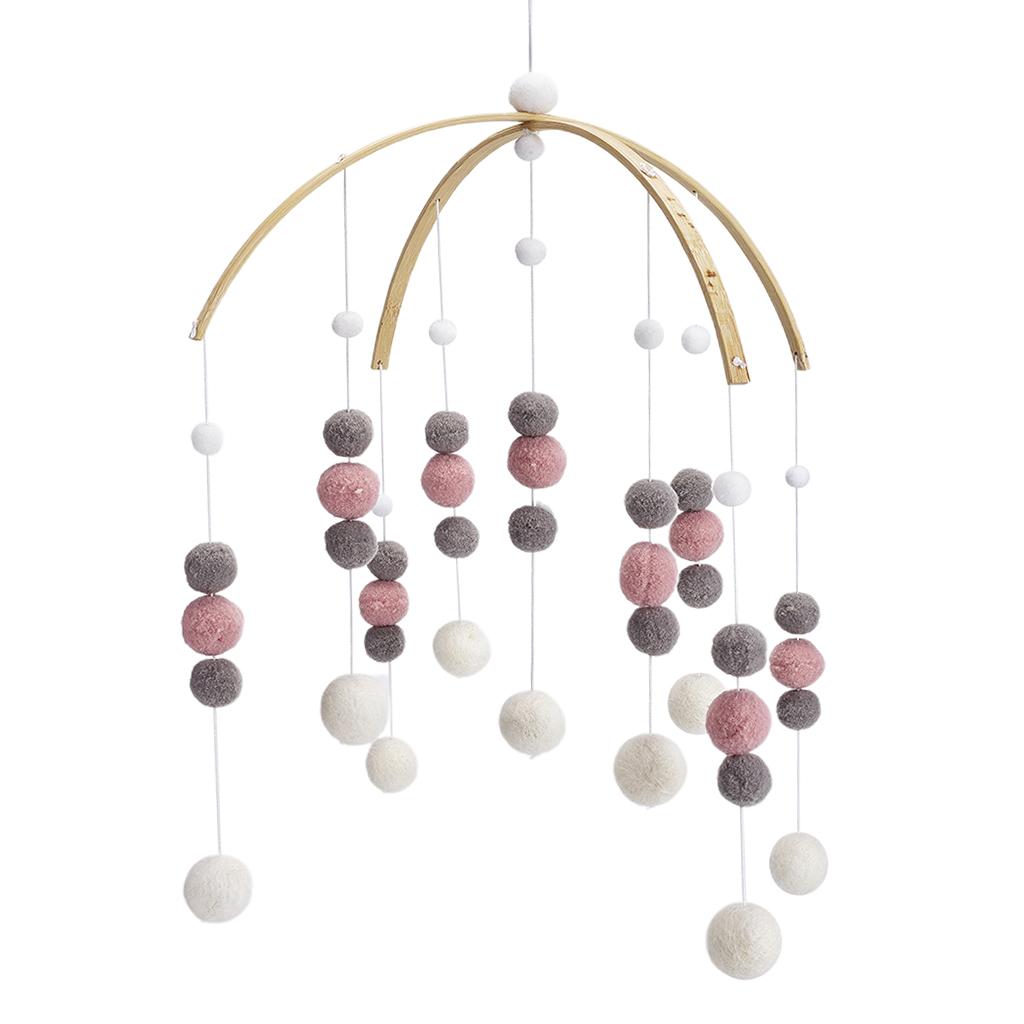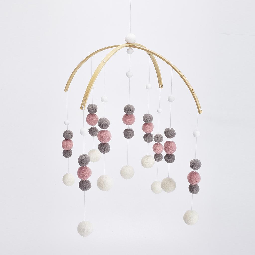 Wind Chime Kids Room Crib Decorative Hanging Balls String Craft Toy Ornament Pink and Gray