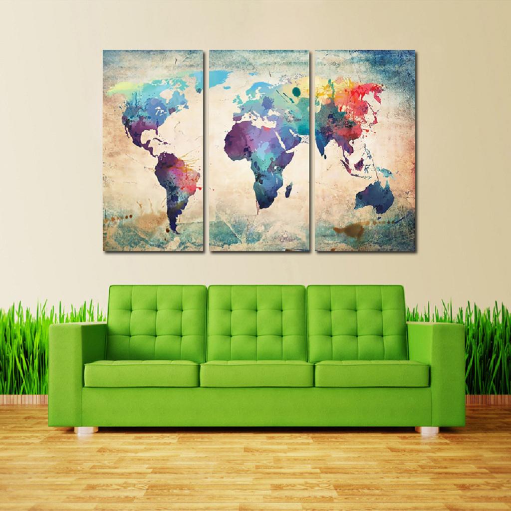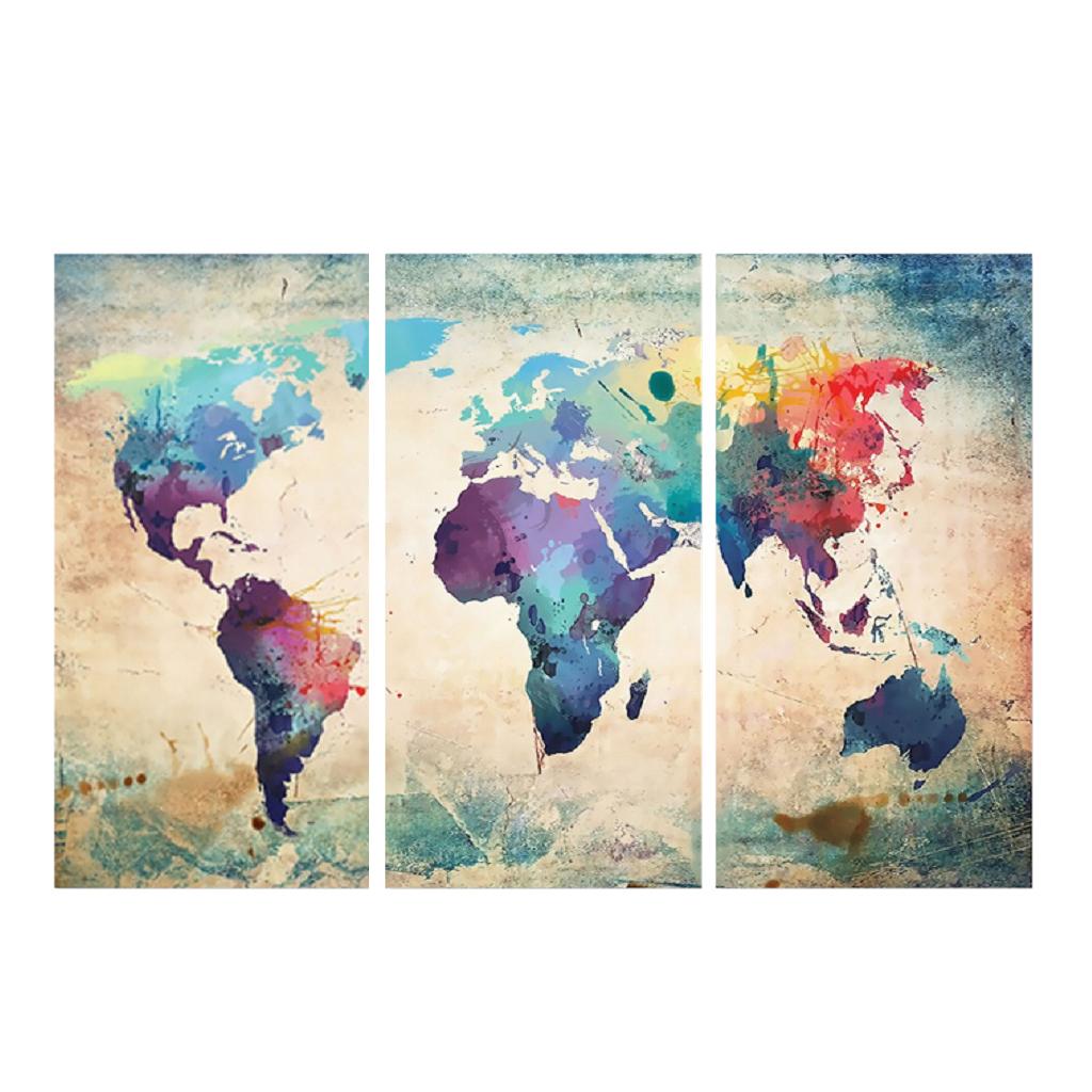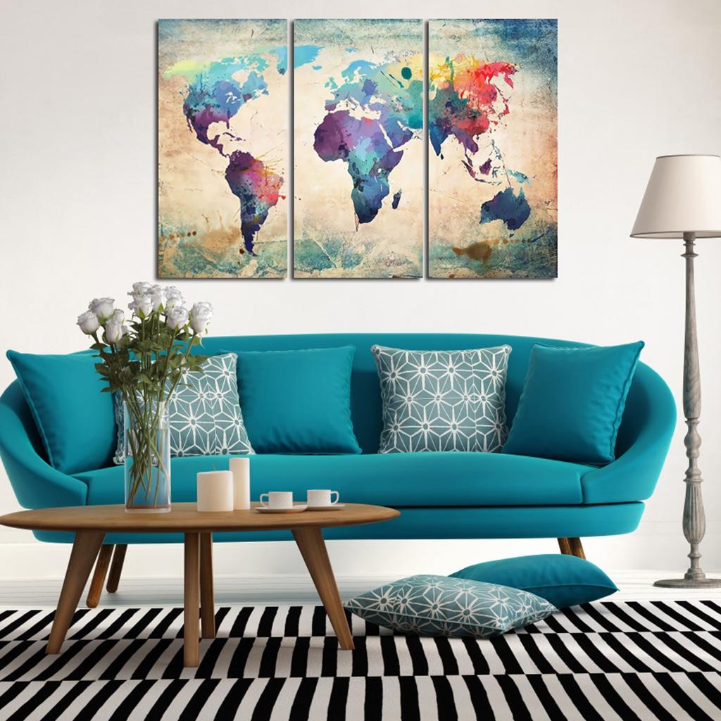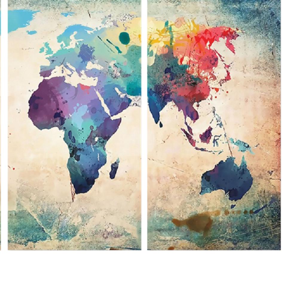 World map theme pattern canvas oil painting #1 30x60cm (3 PCS)