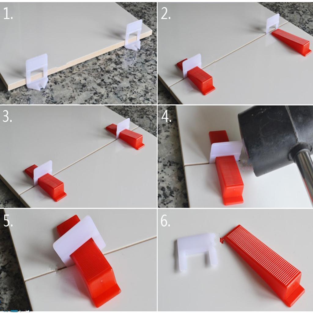 1.Place the strap tool at the bottom of the tile, 4-5cm long distance from corner of tile