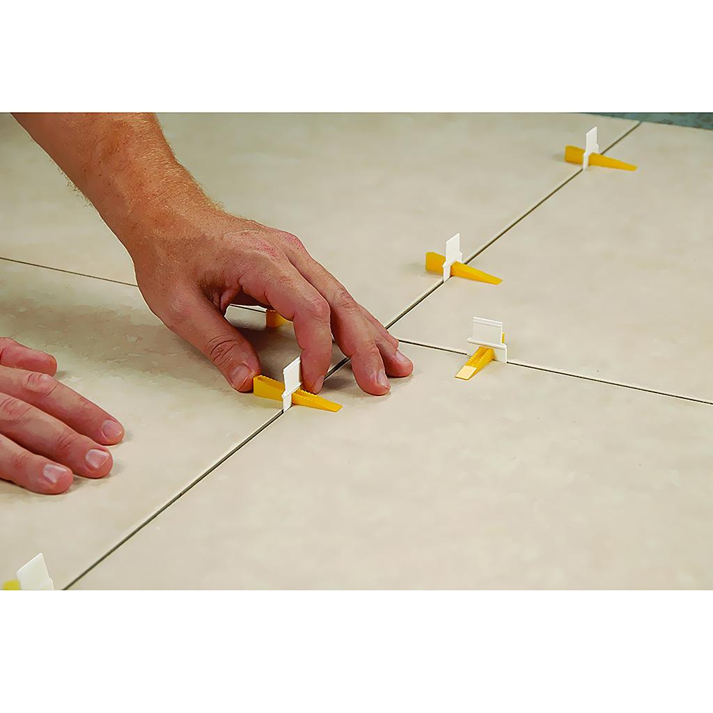 1.Place the strap tool at the bottom of the tile, 4-5cm long distance from corner of tile