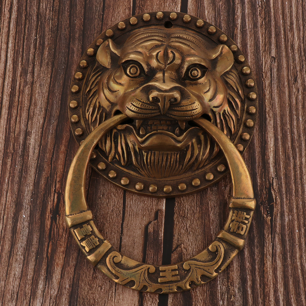 Antique Qing Dynasty style lion head zinc bronze pull handle.