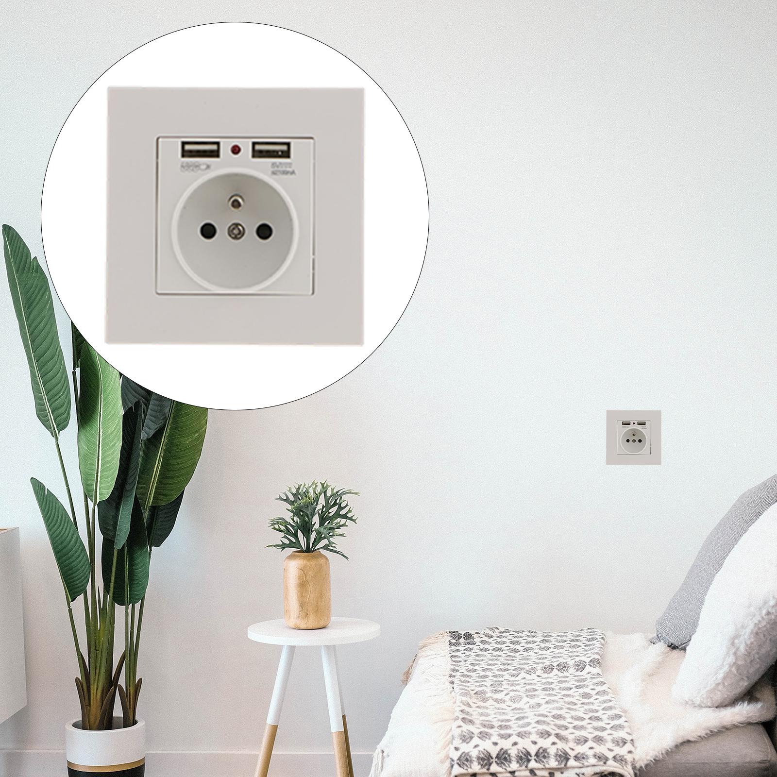 Wall Mount Receptacles Charger with dual socket hole and usb ports, for home appliances, charging simultaneously without adapter;