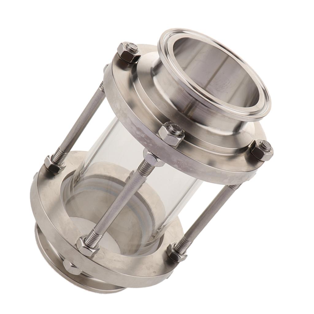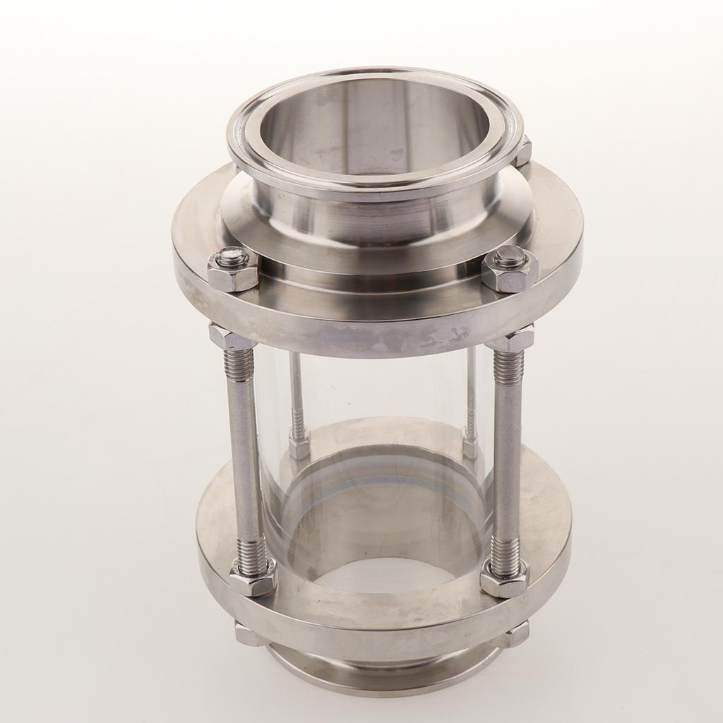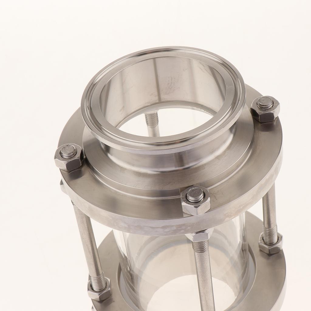 In-line sight glass flow pipe outer dia: 38mm/51mm/63mm, metal base outer dia: 50.5mm/64mm/77.5mm, Fits Tri-clamp: 1.5inch/2.0inch/2.5inch;