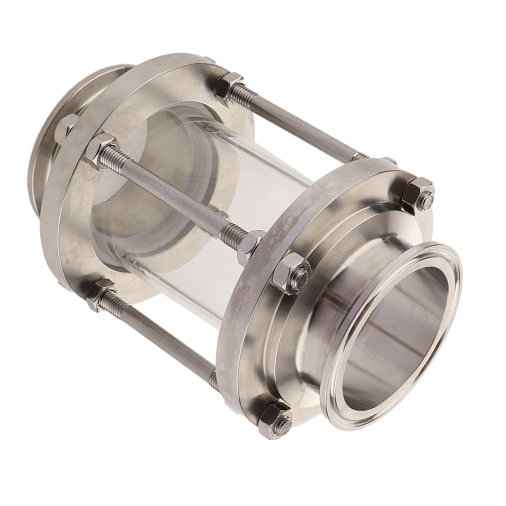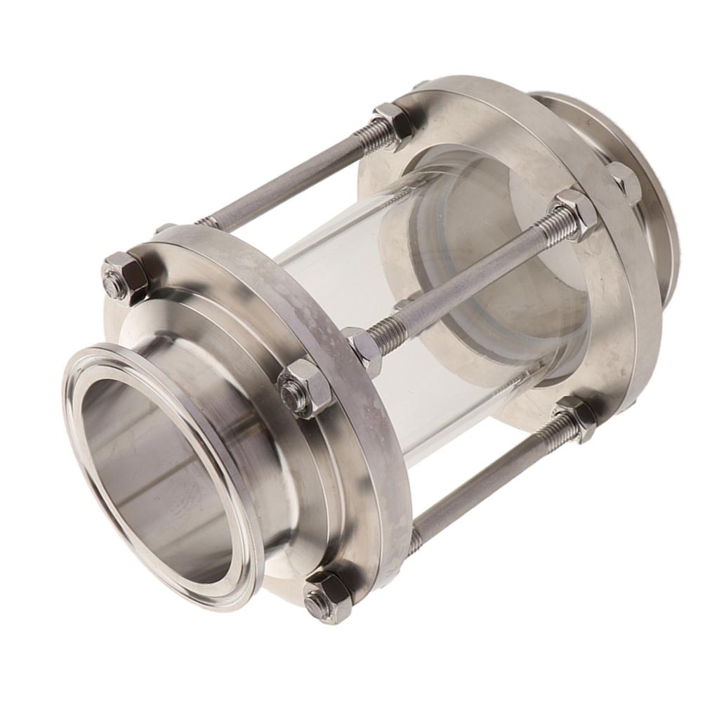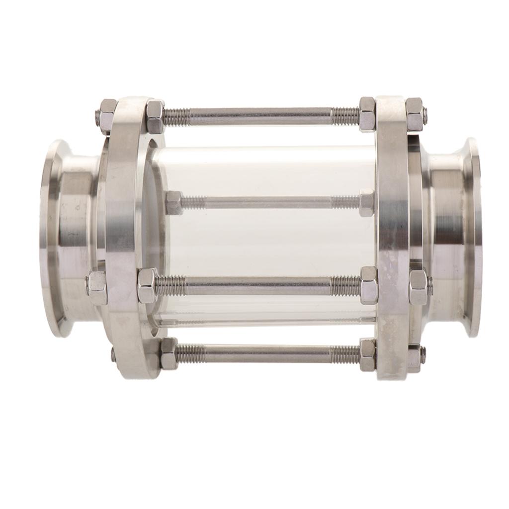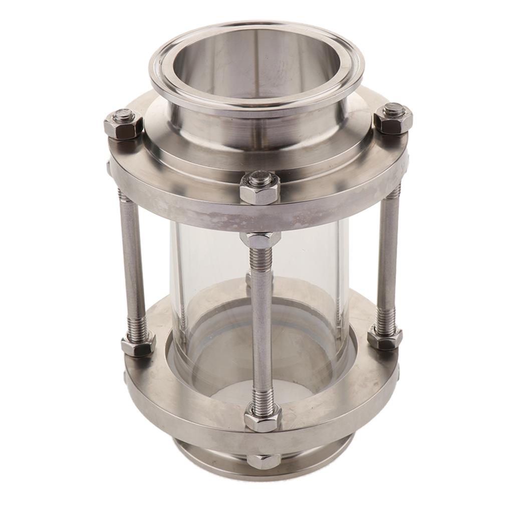 In-line sight glass flow pipe outer dia: 38mm/51mm/63mm, metal base outer dia: 50.5mm/64mm/77.5mm, Fits Tri-clamp: 1.5inch/2.0inch/2.5inch;