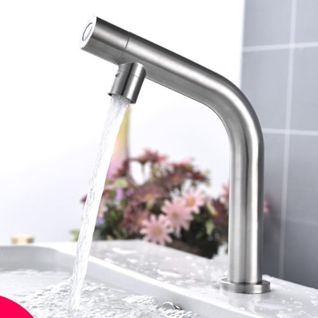 304 Stainless Steel Basin Faucet Single Cold Water Tap With Sprayer for Bathroom Kitchen Hotel