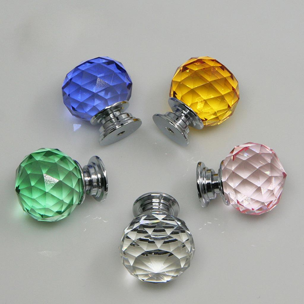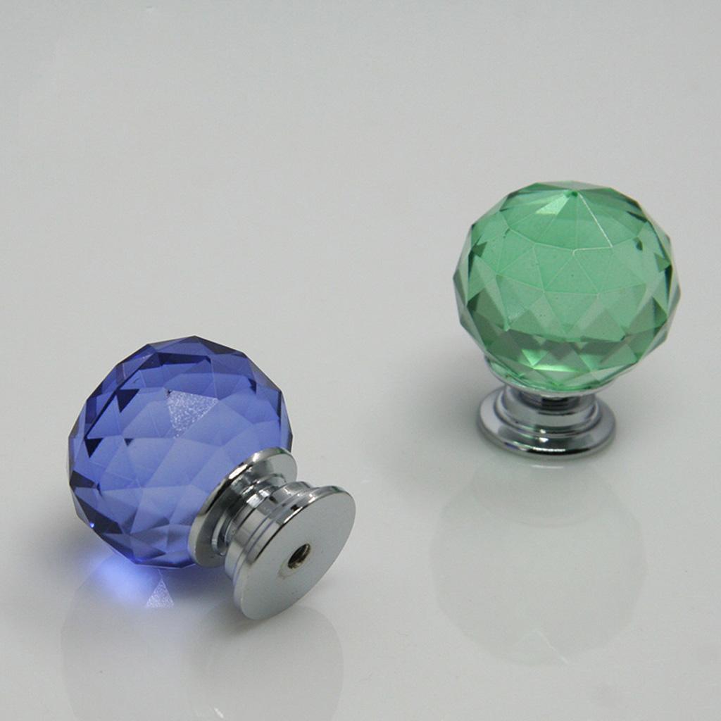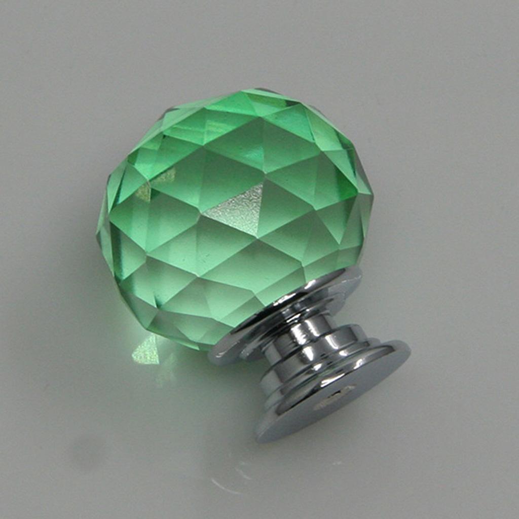 30mm Clear Glass Door Knobs Drawer Cabinet Furniture Bin Handle Knob -Green