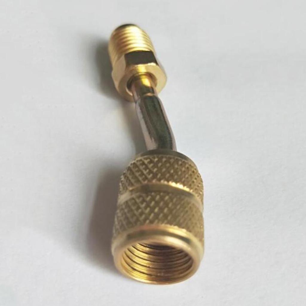 Converts the 5/16" SAE service port size to accept 1/4" SAE gauge-hose set.
