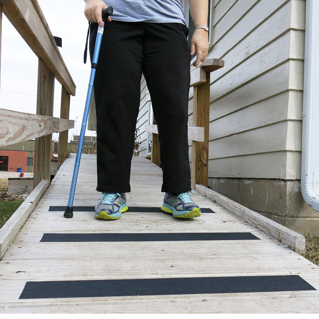 Put this tape on the slippy staircase,without the fear of falling or slipping for its rough surface. It is thin enough to keep you from tripping and to protect you from slipping