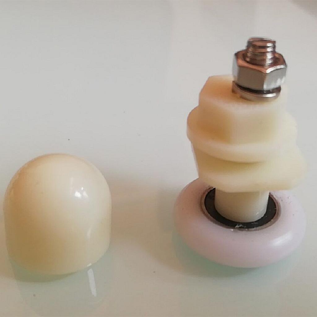 Replacement shower door roller to fasten roller to mount. This shower door roller will provide smooth sliding. White ABS material shower door roller with stainless steel shaft.
