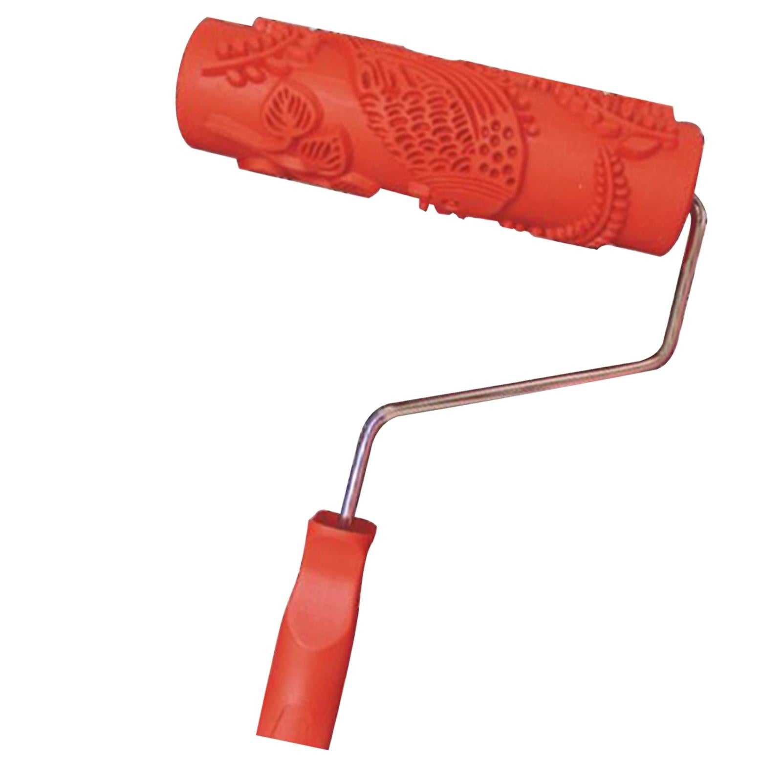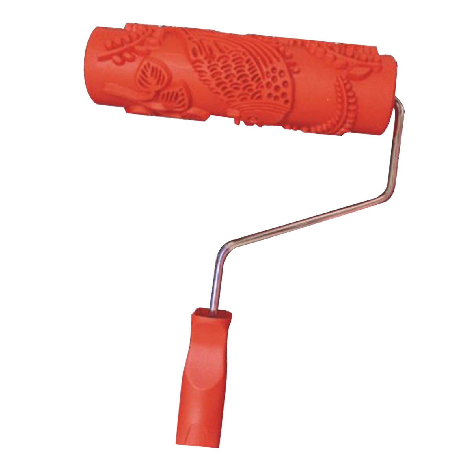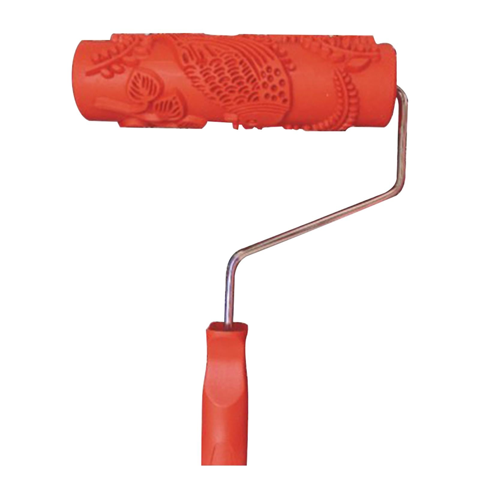 7" Embossed Flower&Bird Painting Roller with Plastic Handle for Wall Deco