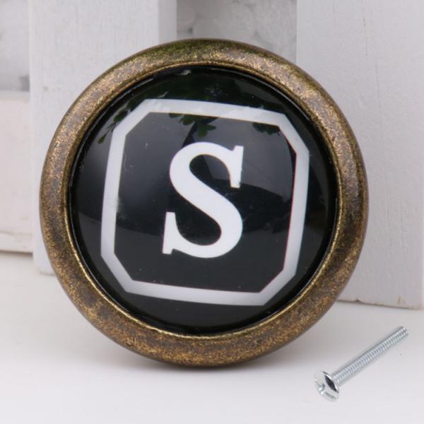 Antique Brass Cabinet Door Drawer Bin Dresser Handle Pull Knob Hardware Letter S