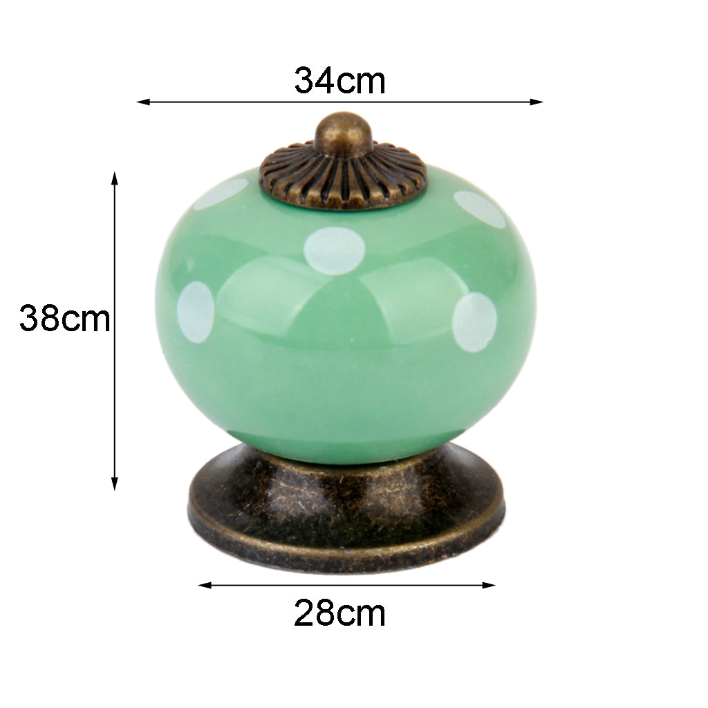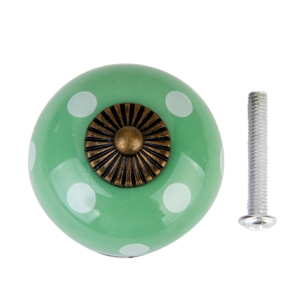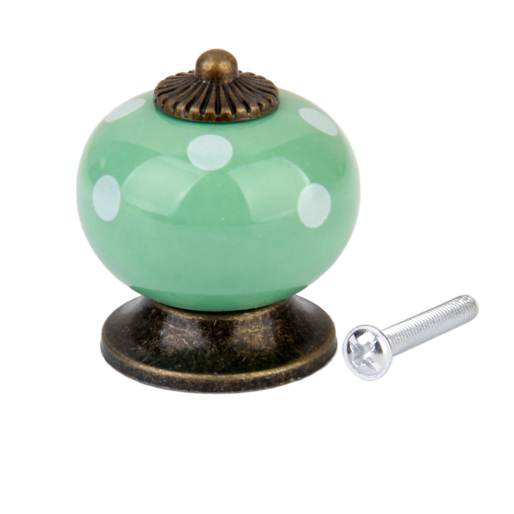 Ceramic White Dot Charms Home Kitchen Door Drawer Cupboard Wardrobe Pull Handle Knob Green with Mounting Screw