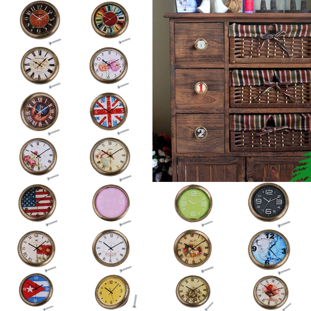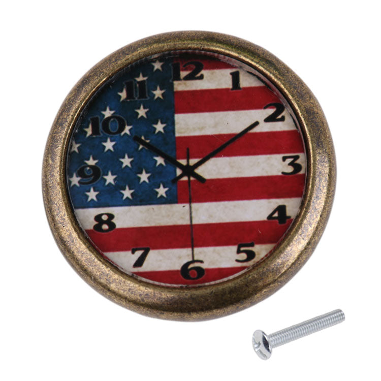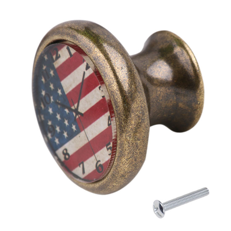 Classic Clock Door Drawer Bin Pull Knob Closet Wardrobe Handle American Flag