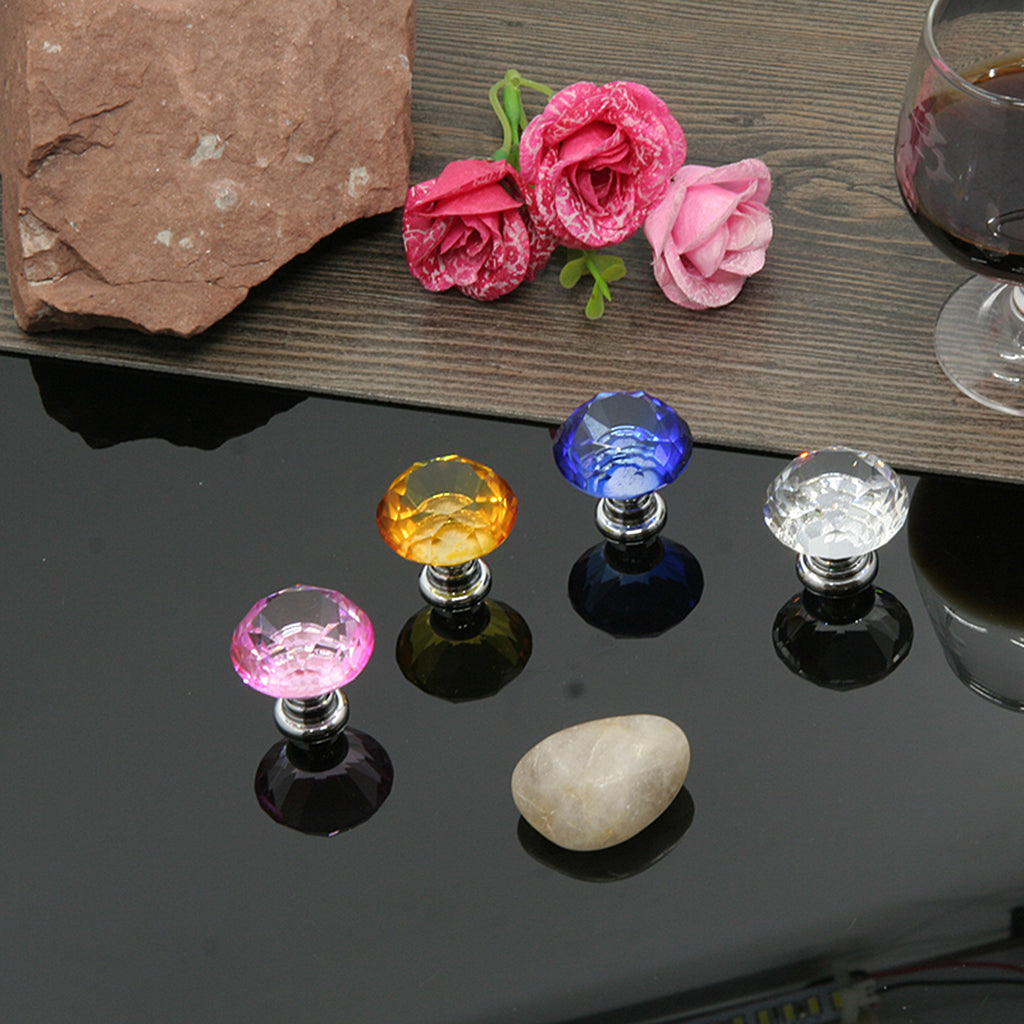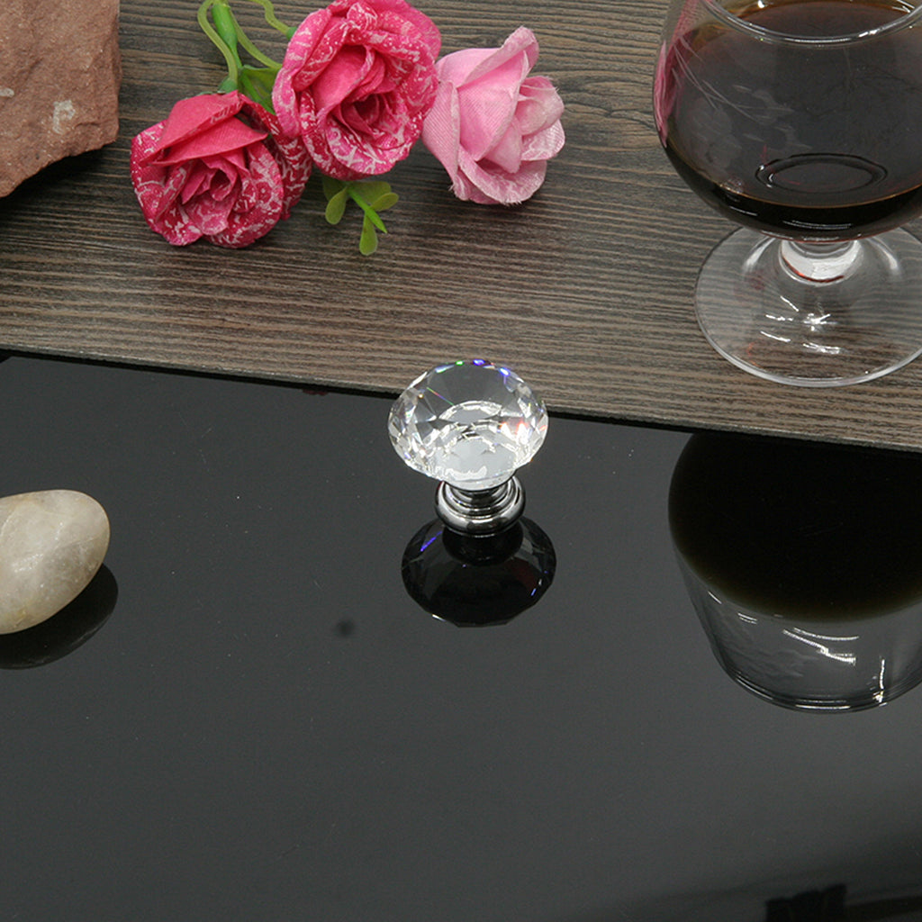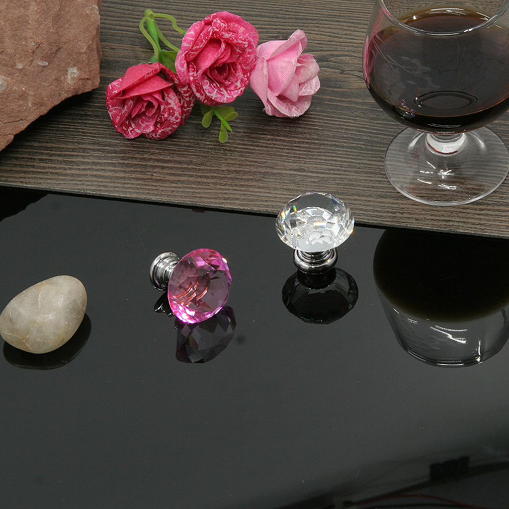 Clear Diamond Crystal Cabinet Door Drawer Cupboad Bin Handle Pull Knob 30mm
