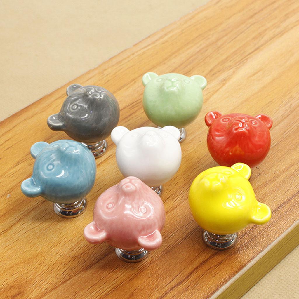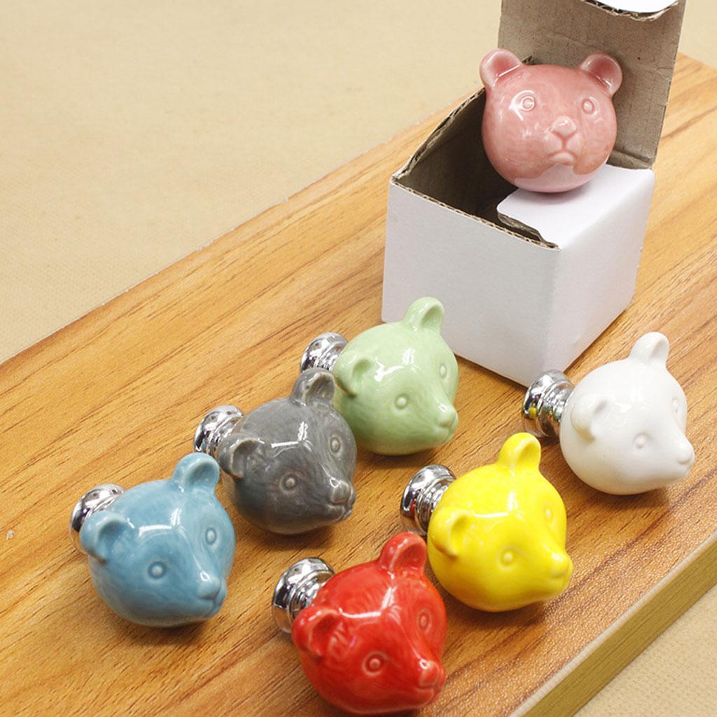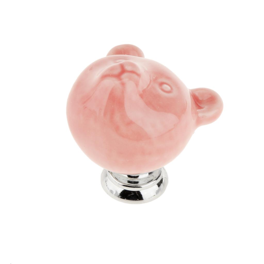 Creative Bear Ceramic Drawer Cabinet Cupboard Door Pull Handle Knob Pink