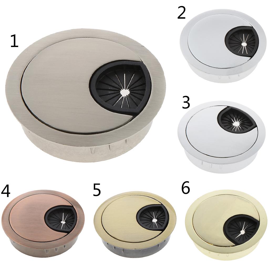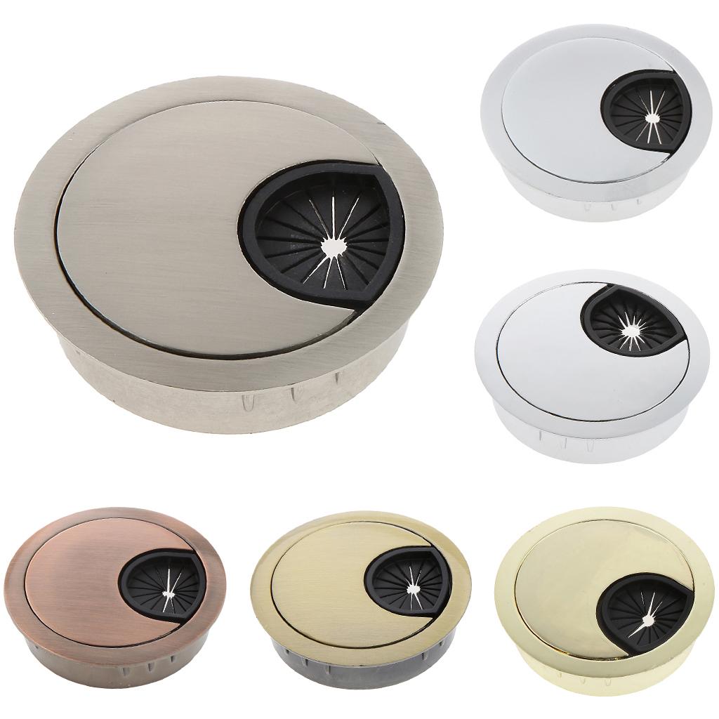 Desk Table Metal Grommet Outlet Wire Cable Cover 50mm Pearl Silver
