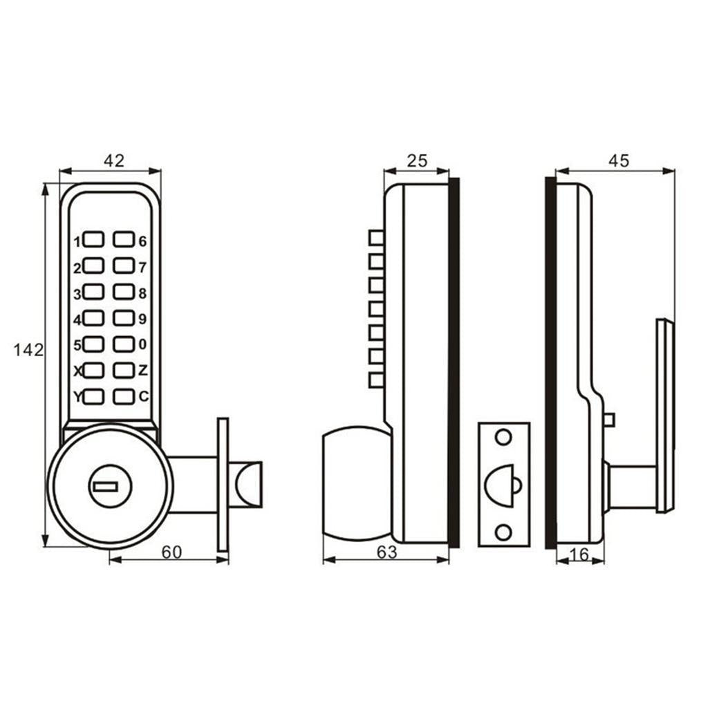 This password/combination door lock offers great convenience of reliable keyless access by code. User can setup ten different password/ codes for access, each code can be set from 1 to 13 digits. If needed, move the key cover and user can still use the backup keys included in the package to open the lock;