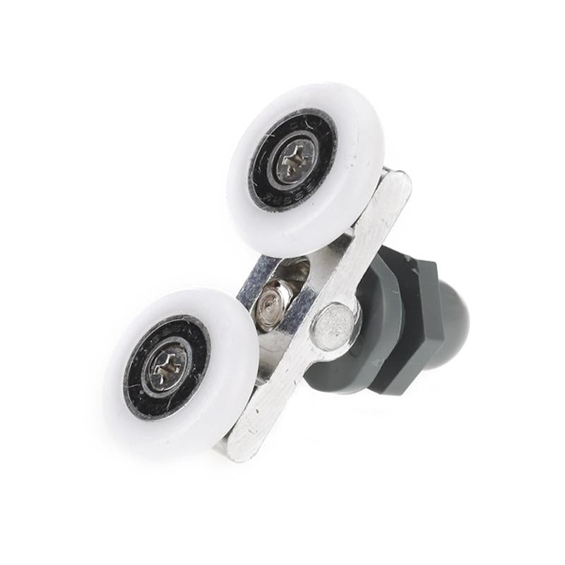 Replacement shower door roller with dual wheels. This shower door roller can fit curved showers and suits 6-8mm glass. Wheel size of the shower door roller is approx. 25mm diameter and 5.3mm thick.