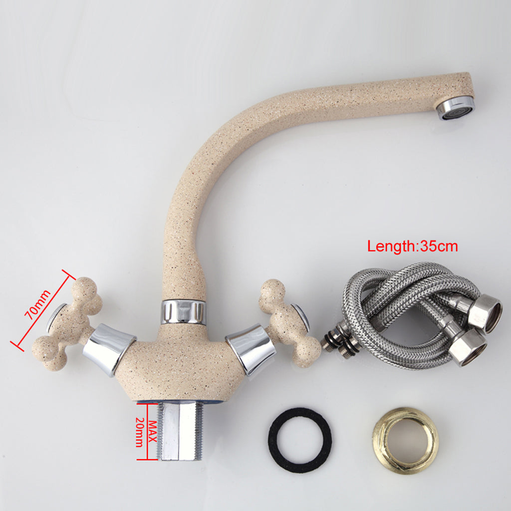 Dual handle deck mounted spiral open 360 degree rotated tap hot/cold kitchen faucet with sprayer.