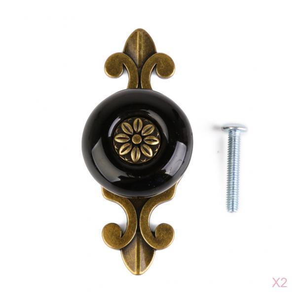 Pack of 2 PCS Ceramic Head + 2 Metal Handle + 2 Flower Pattern Screw + 2 Normal Screw for Home Cabinet Door Pull Handle Black