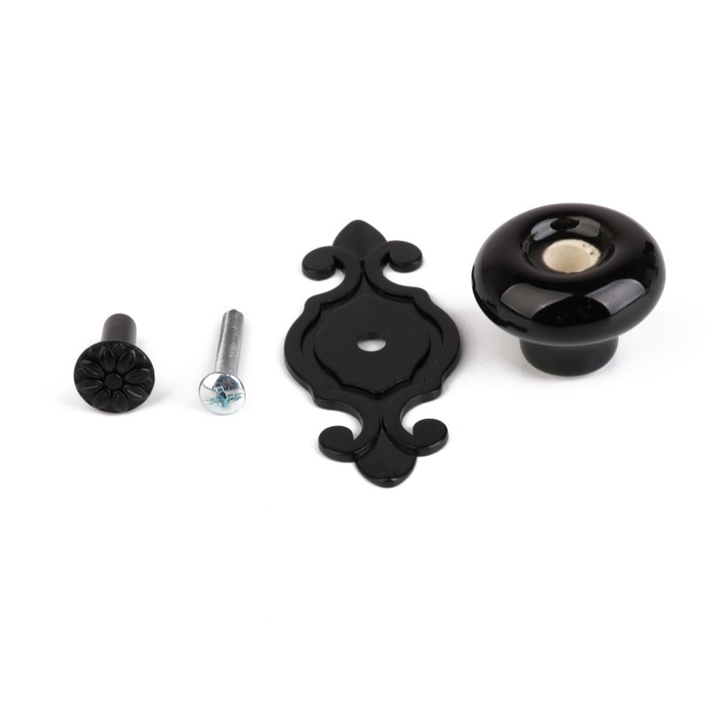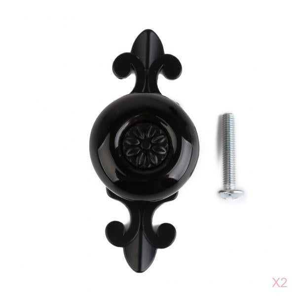 Pack of 2PCS Ceramic Head + 2 Metal Handle + 2 Flower Pattern Screw + 2 Normal Screw for Home Cabinet Door Pull Handle Black
