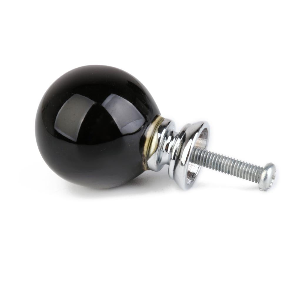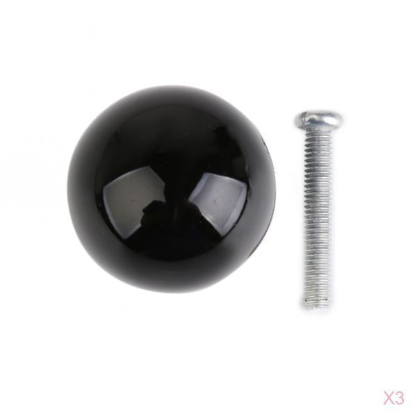 Pack of 3PCS Home Hotels Restaurant Door Cabinet Wardrobe Golf Ball Shape Black Pull Handle Ceramic Knob + 3 Mounting Screws