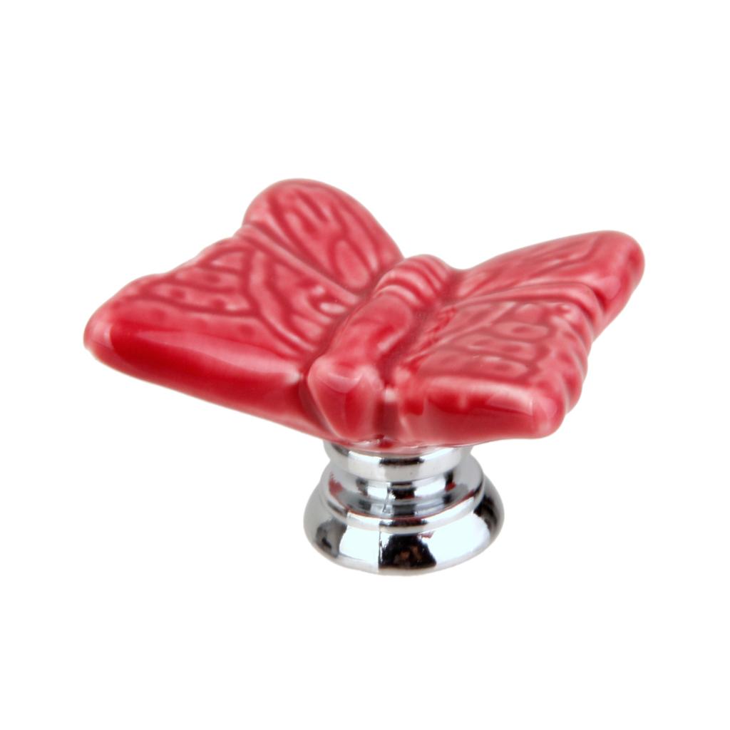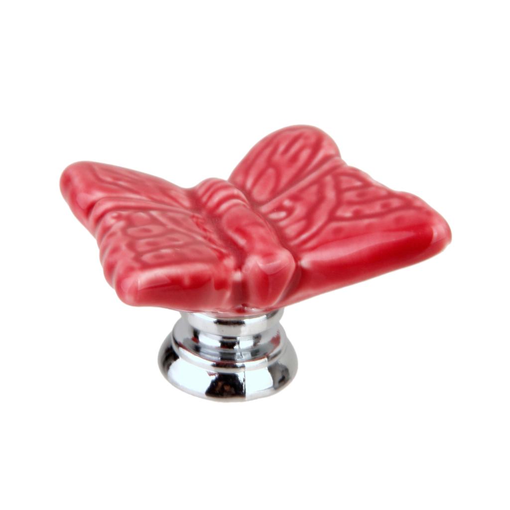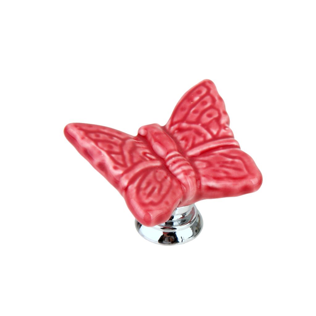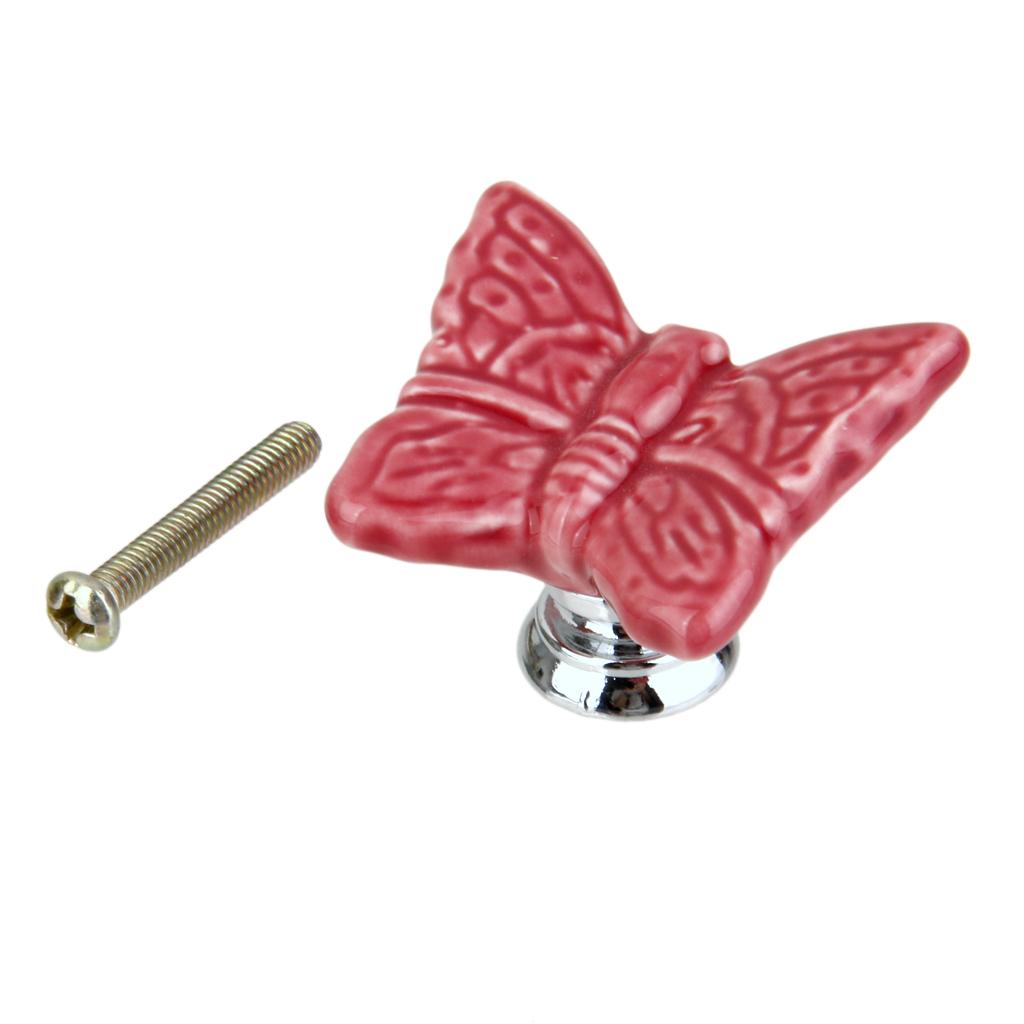 Pink Butterfly Shaped Ceramic Kitchen Cabinet Cupboard Handles Pull Knob