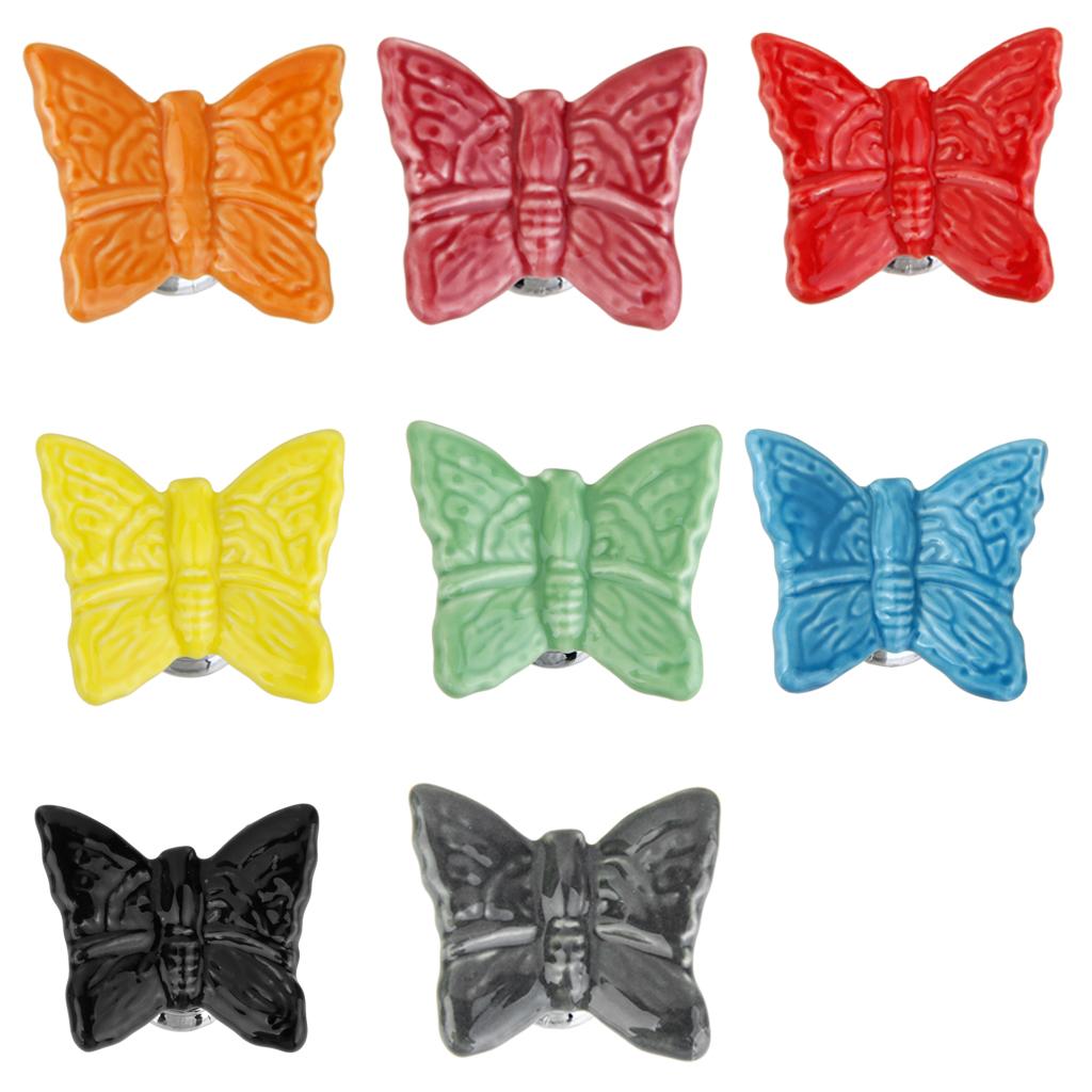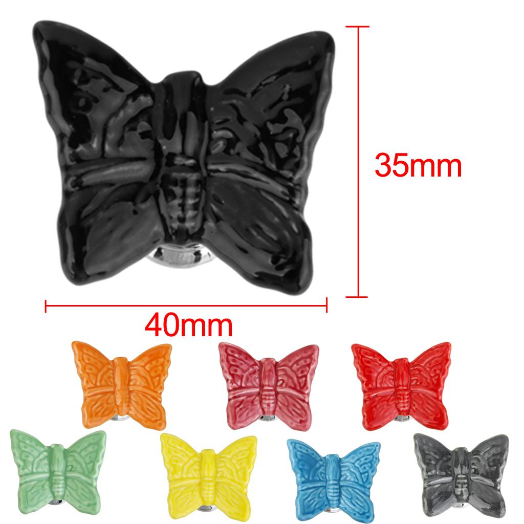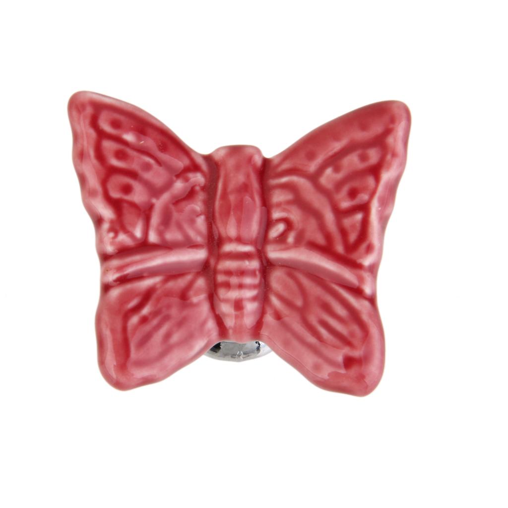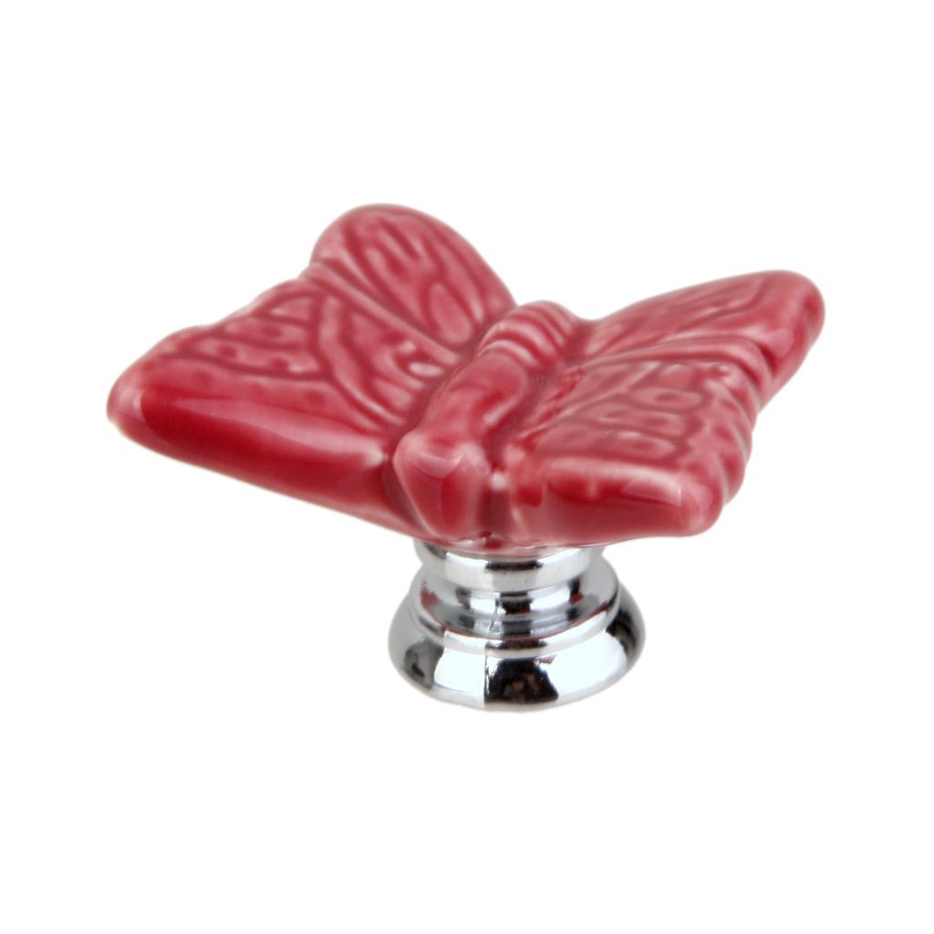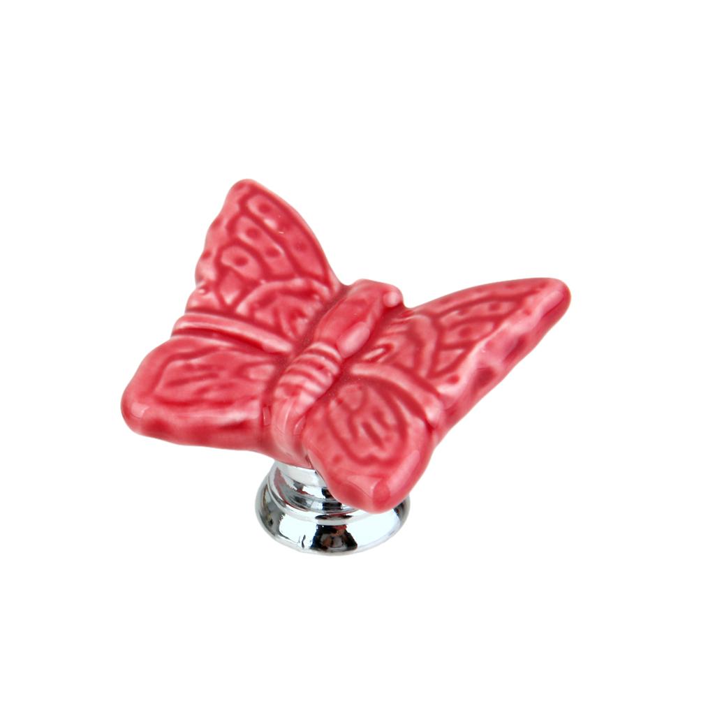 Pink Butterfly Shaped Ceramic Kitchen Cabinet Cupboard Handles Pull Knob