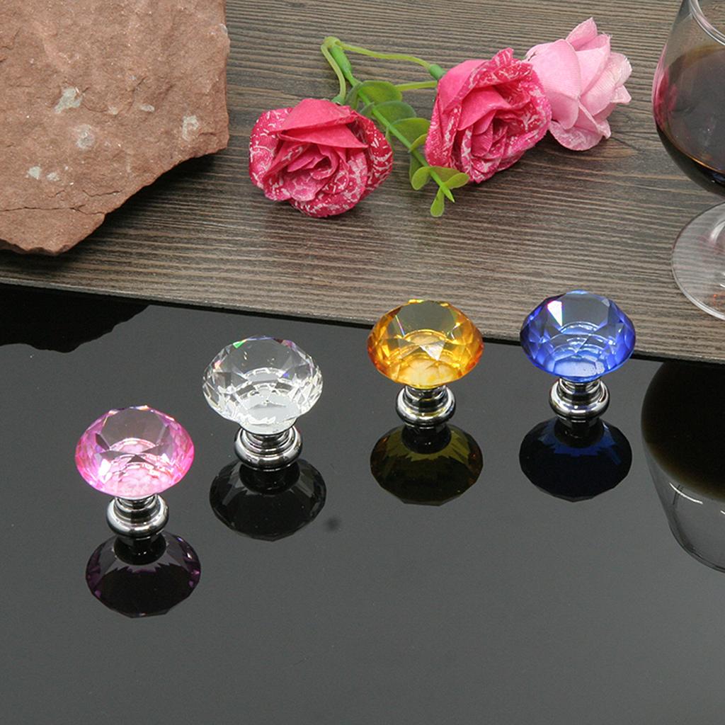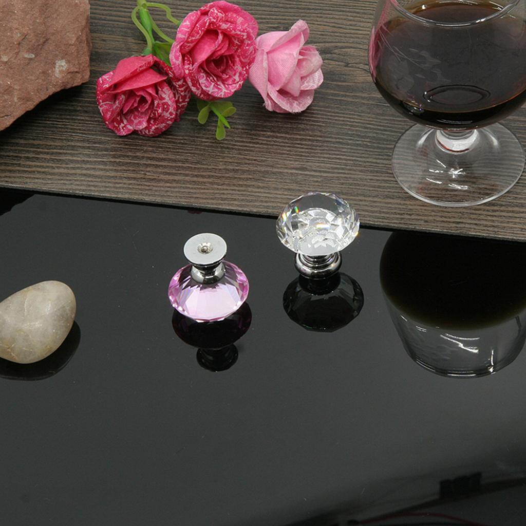 Pink Diamond Crystal Cabinet Door Drawer Cupboad Bin Handle Pull Knob 30mm