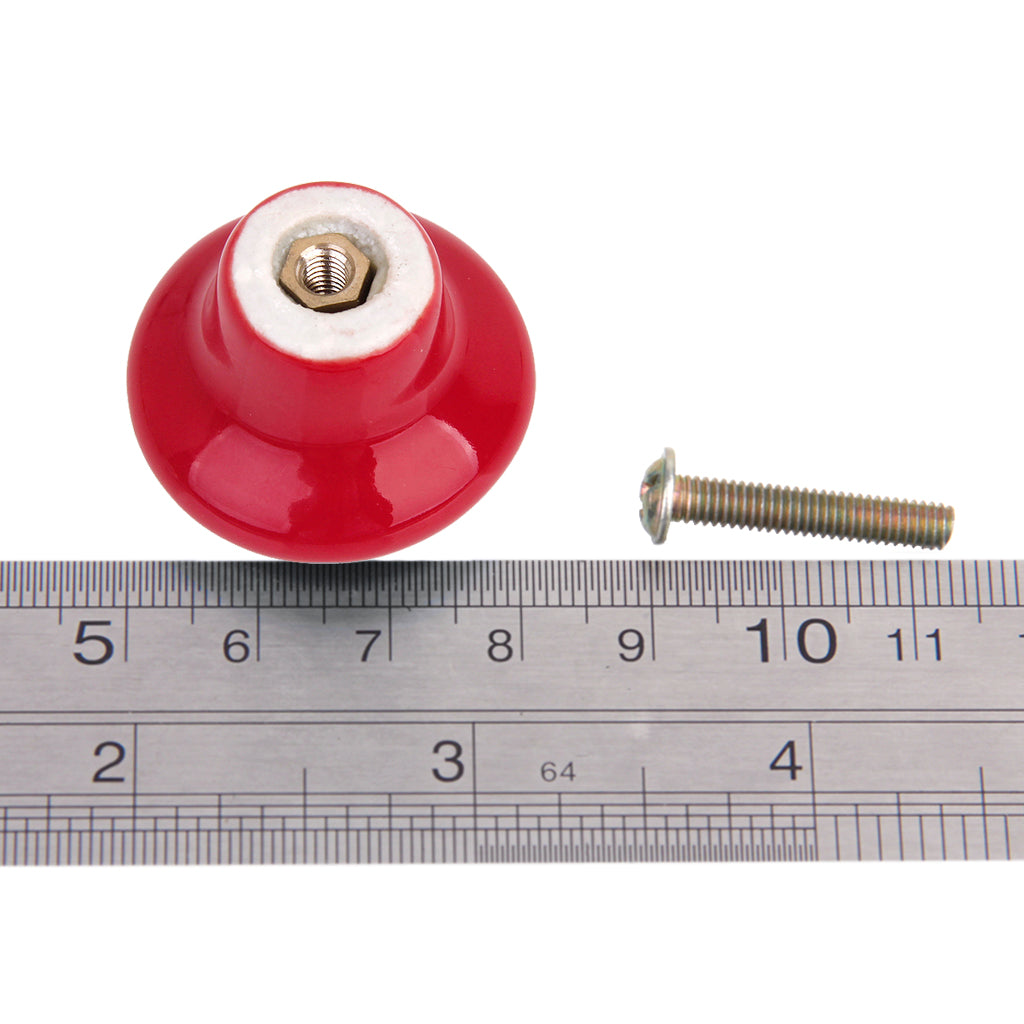 Red Round Ceramic Kitchen Cabinet Cupboard Handles Pull Knob
