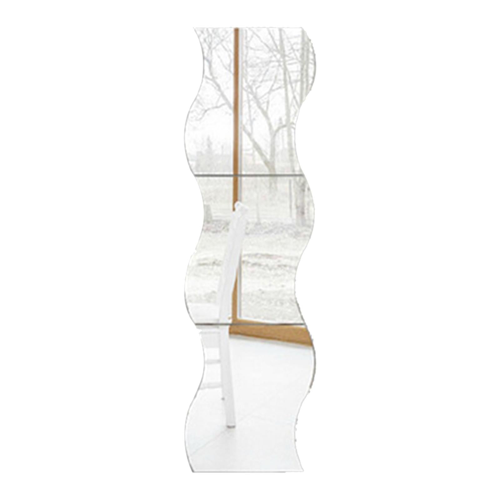 Removable 6pcs Silver Wave Pattern Art Decal Mirror Wall Stickers DIY Decor