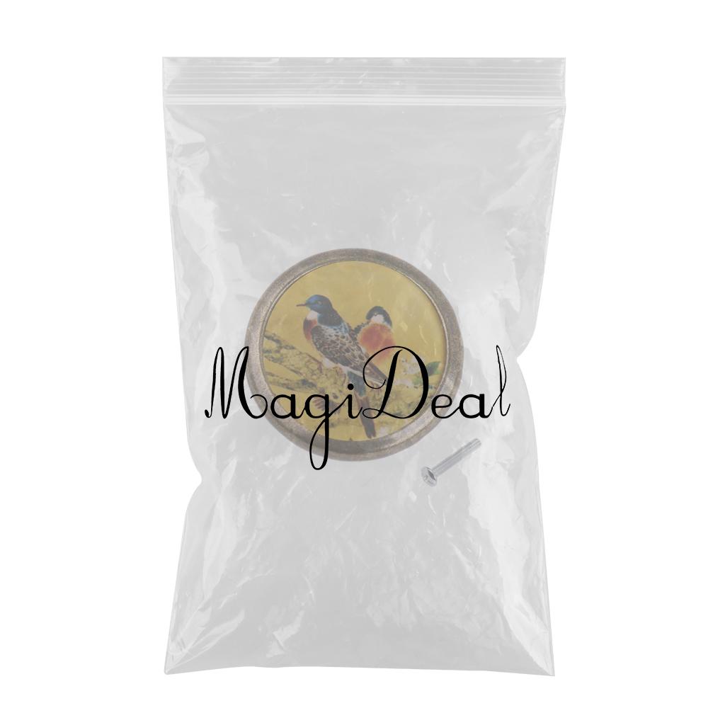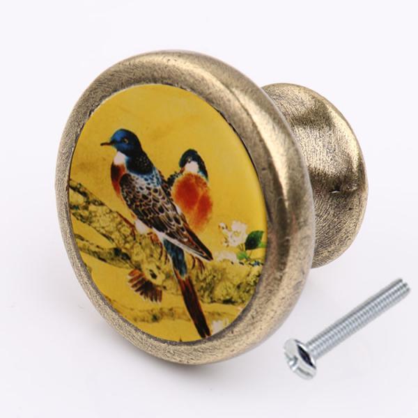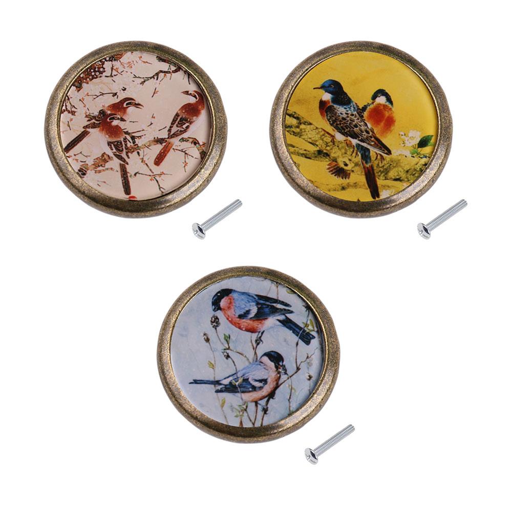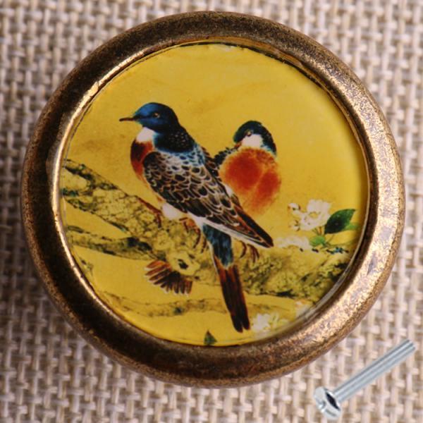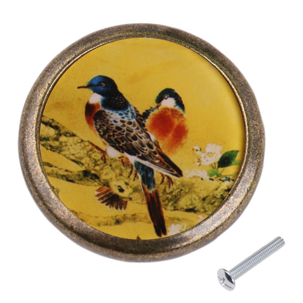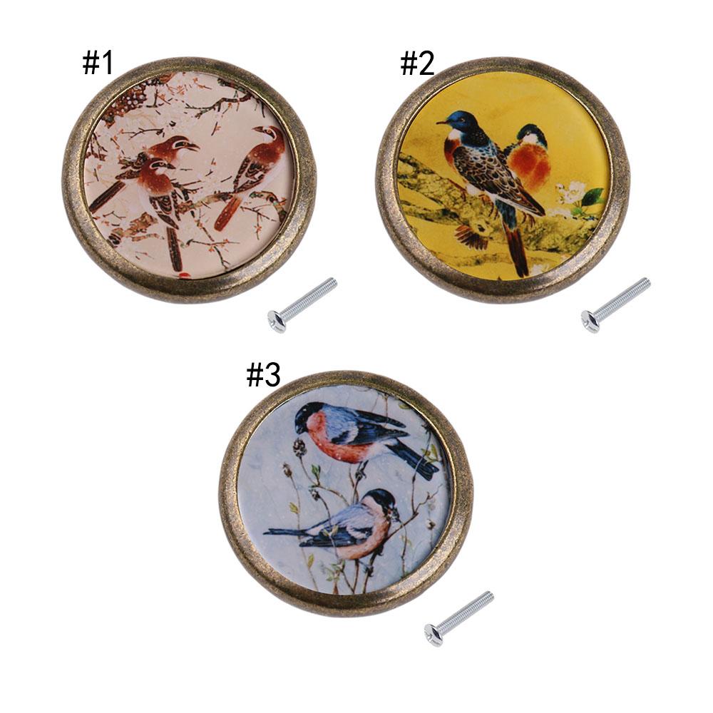 Retro Round Bird Print Knob Wardrobe Cabinet Door Drawer Pull Bin Handle #1