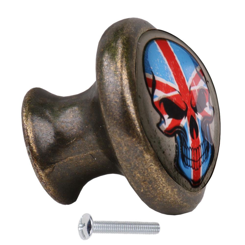 Retro Skull Print Wardrobe Cabinet Door Cupboard Drawer Pull Handle Knob #2