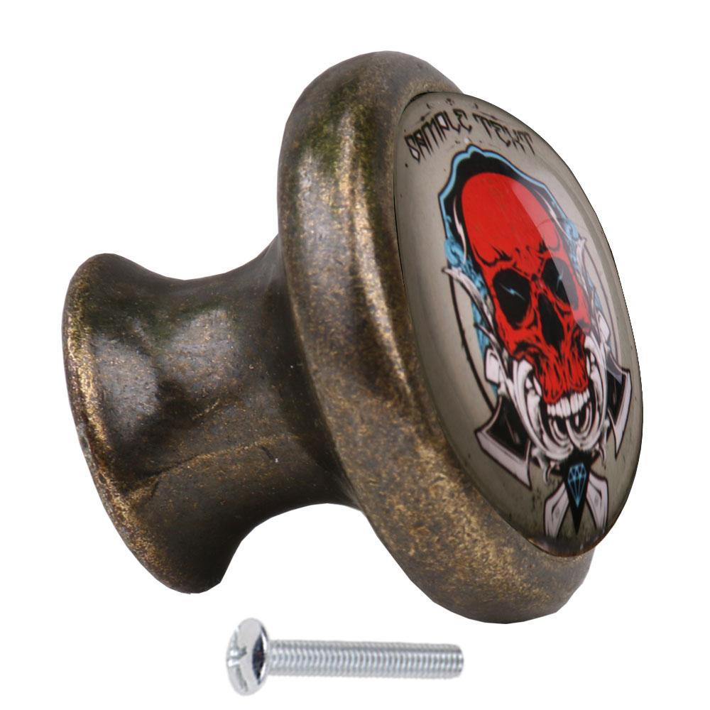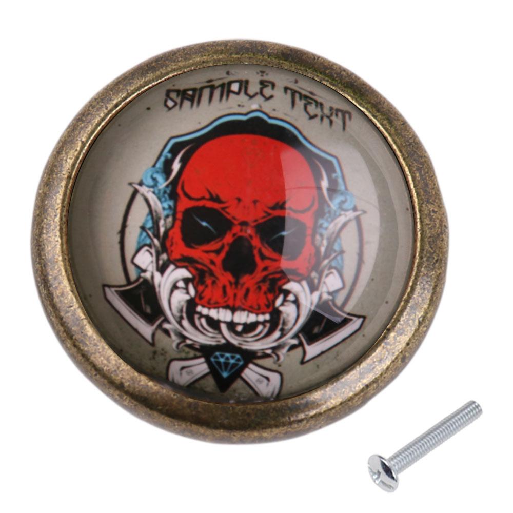 Retro Skull Print Wardrobe Cabinet Door Cupboard Drawer Pull Handle Knob #7