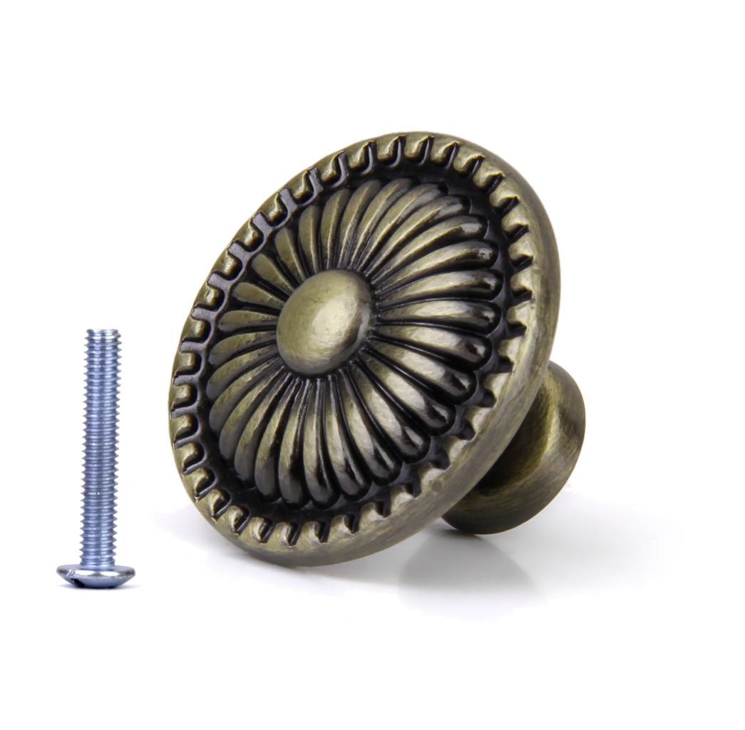 Decorative drawer pull knob is crafted in traditional style. Elegant drawer pull knob is sure to bring a touch of beauty to your home. This cabinet handle knob will help a stylish and complete look for your cabinet, drawer, bin, dresser, etc.