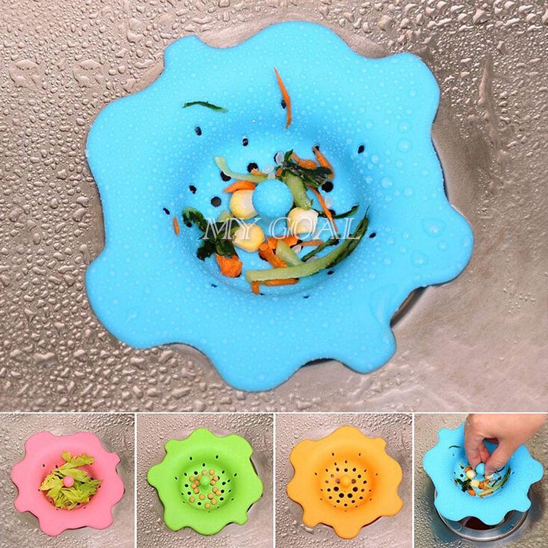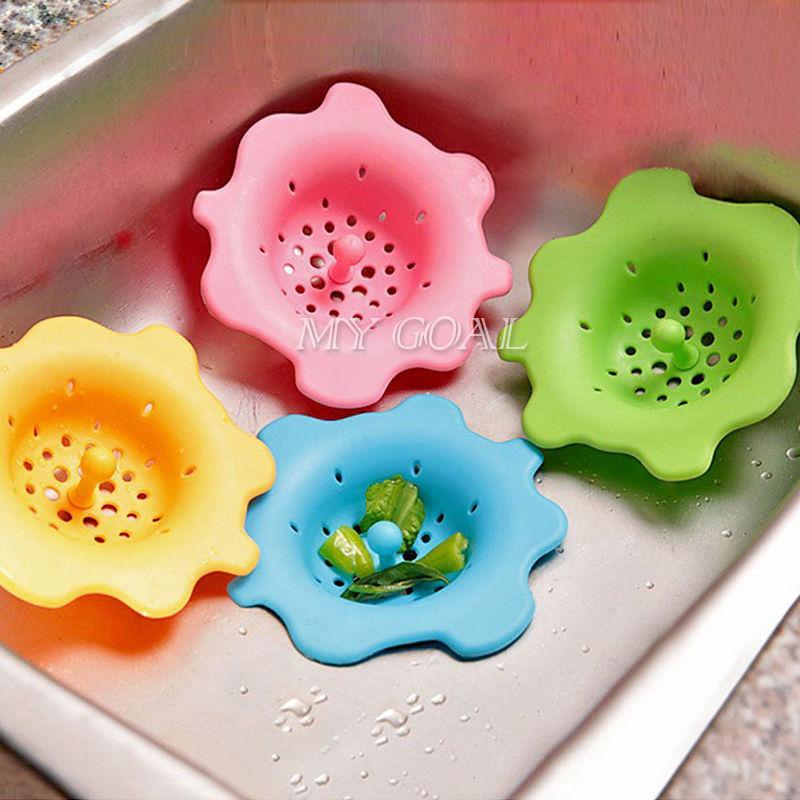 Silicone Sink Strainer Waste Filter Drain Stopper Bath Shower Kitchen-Pink