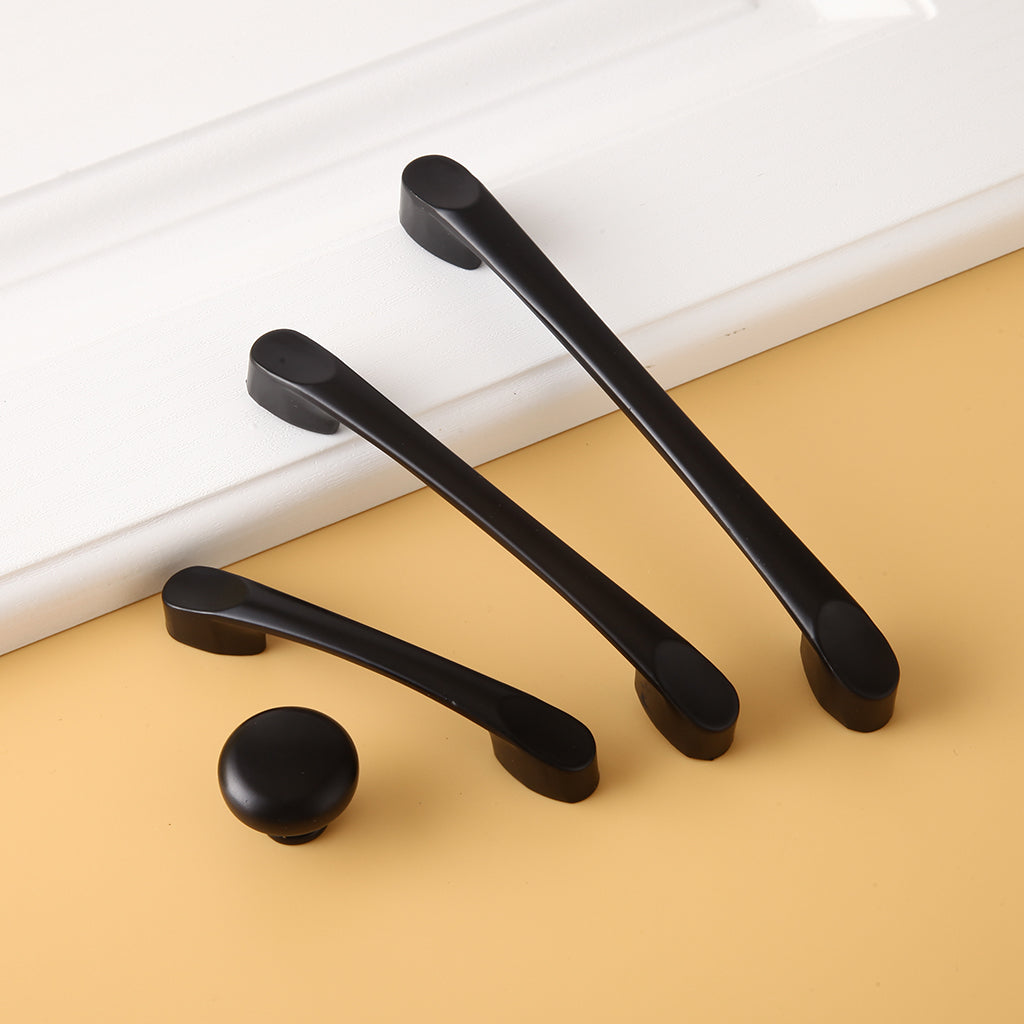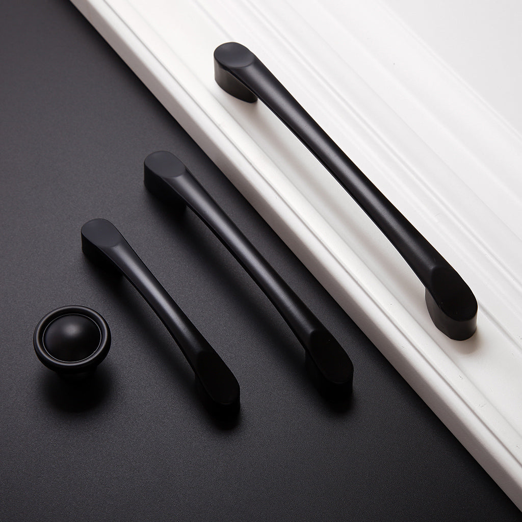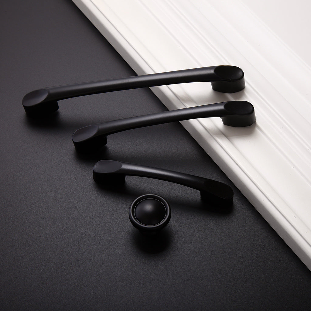 Simple Style Matte Black Furniture Decor Metal Door Drawer Pull Handle Knob