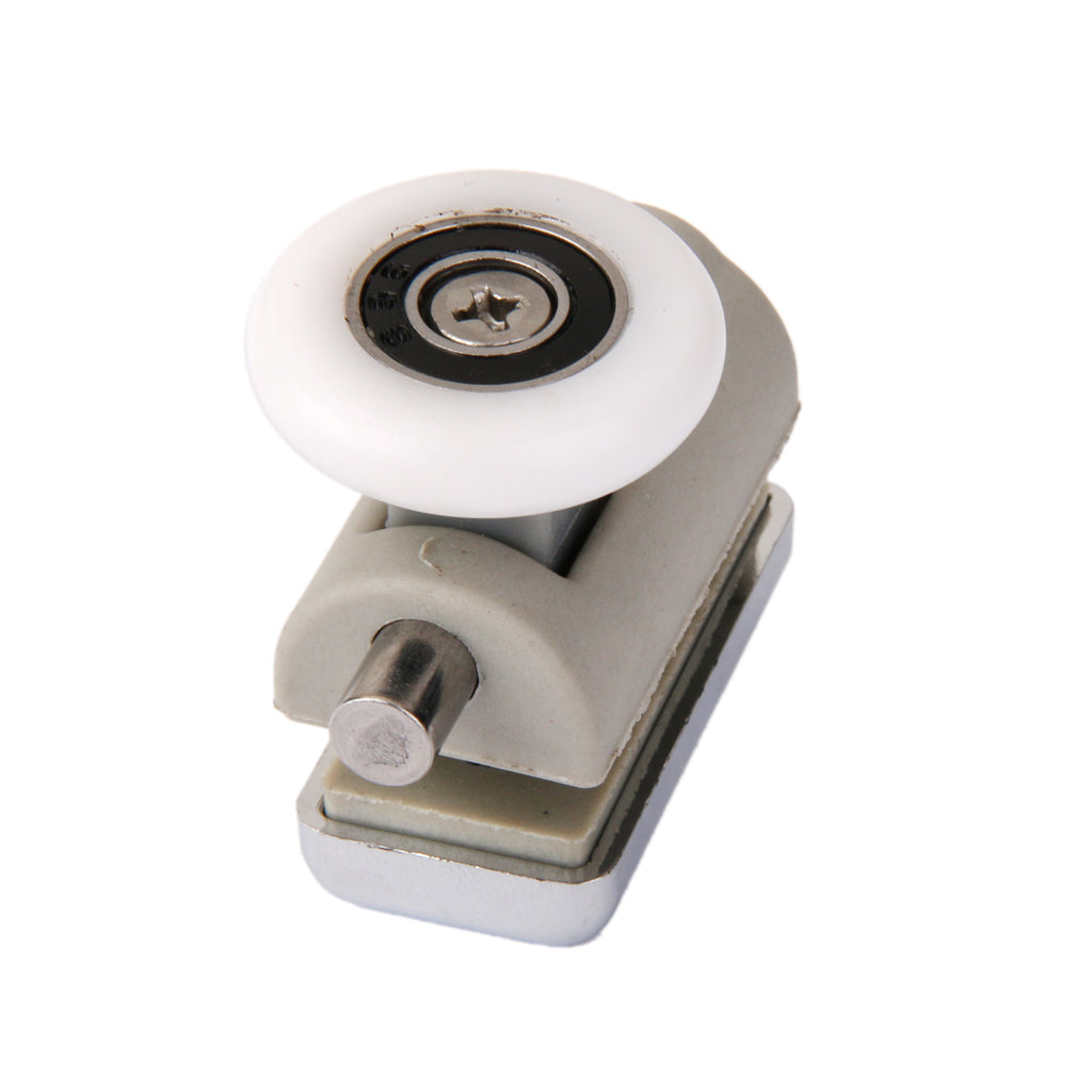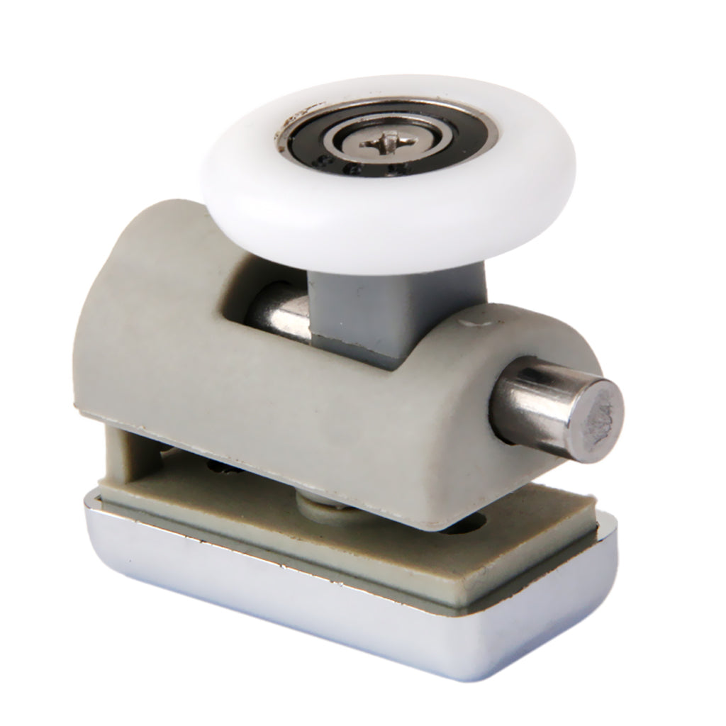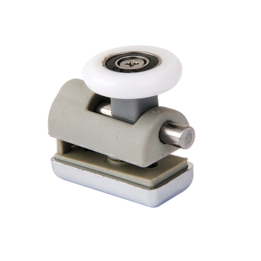 Single bottom shower door roller fits glass where the distance between the center of the fixing hole and the edge of the glass is 14mm. This shower door roller is designed with spring loaded action and can fit curved showers.