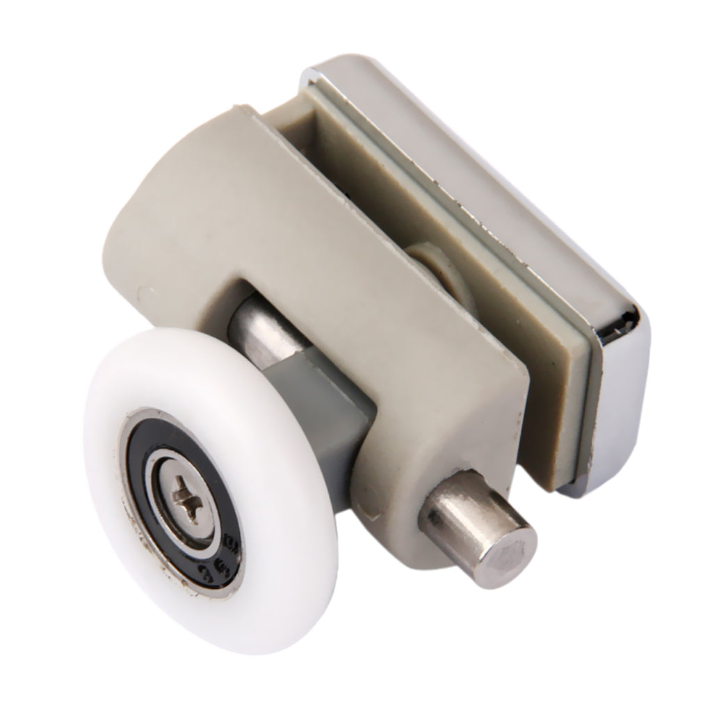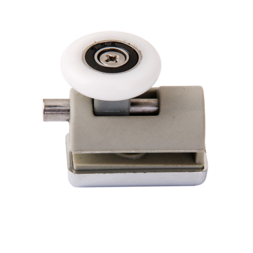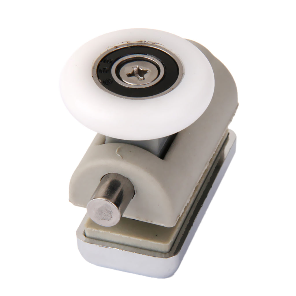 Single bottom shower door roller fits glass where the distance between the center of the fixing hole and the edge of the glass is 14mm. This shower door roller is designed with spring loaded action and can fit curved showers.