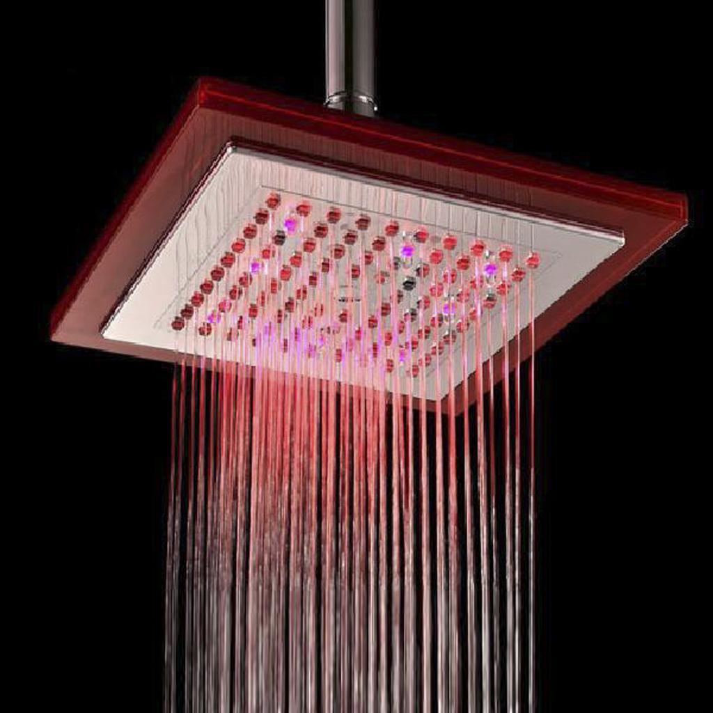Square Shape Three-Colored Temperature Sensor Spray LED Shower Spray Head