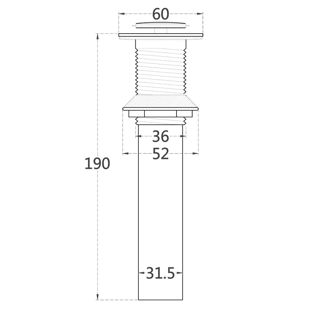 Unslotted push pop up top basin waste suitable for basins without an overflow