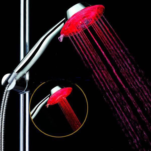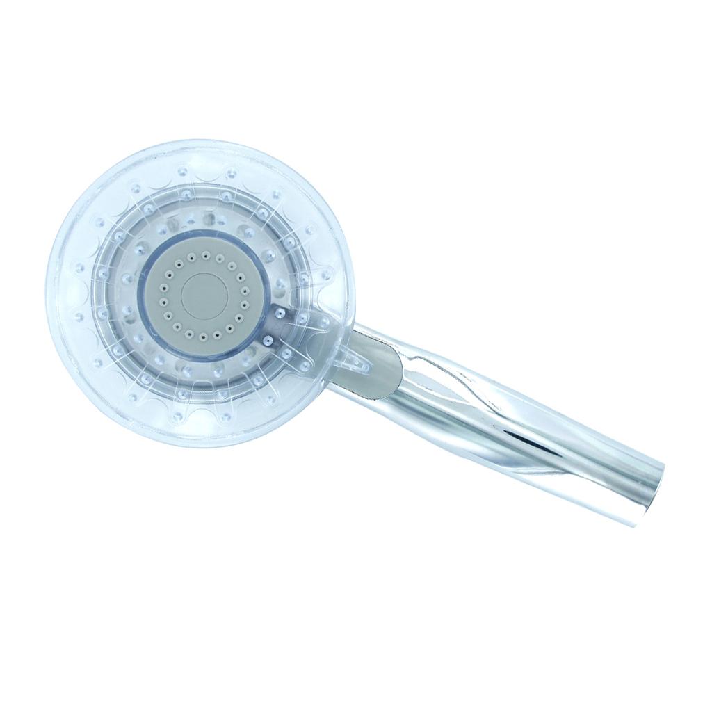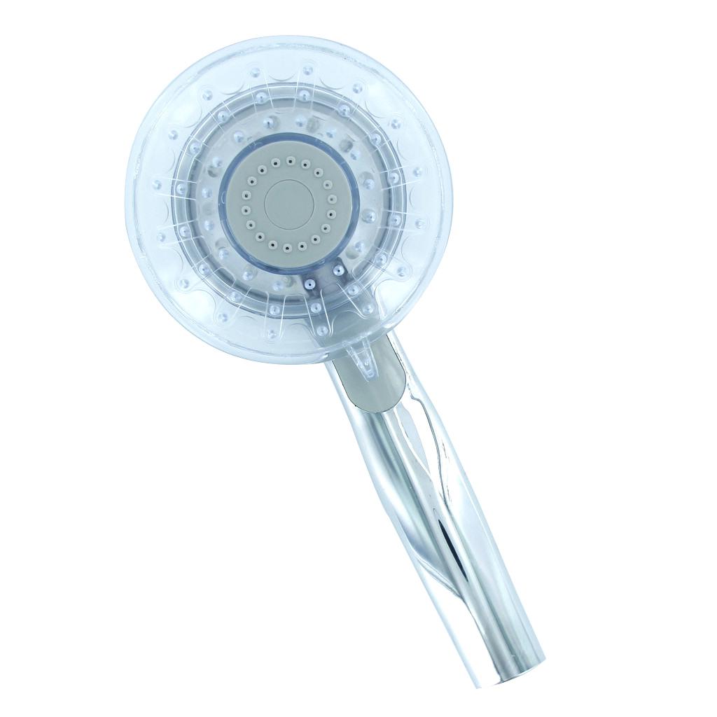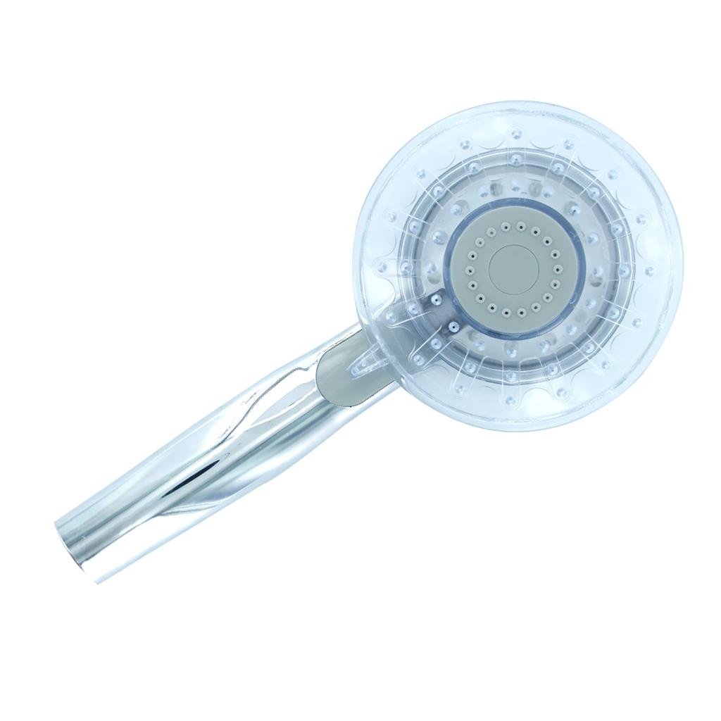 xx-R10 Three Colors Temperature Sensor Multiple Spray Pattern LED Shower Spray Head that is an amazing handheld LED shower spray head is made for bathroom. This LED shower spray head needs no battery or external power supply and is temperature sensitive and automatic controlled. It is a very practical and stylish LED shower head for your bath room.