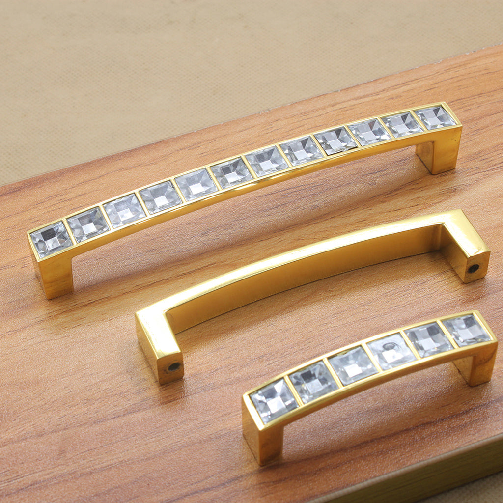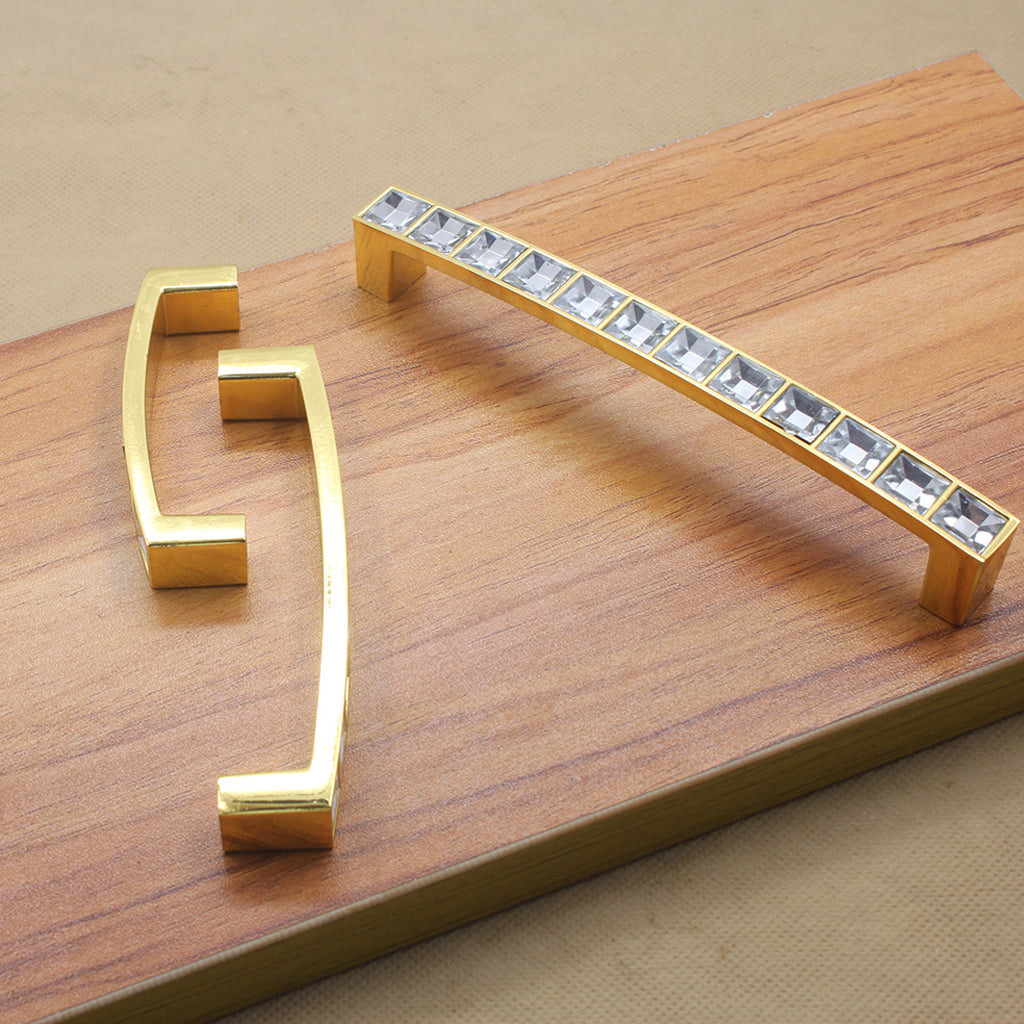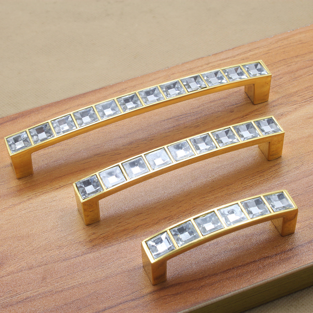 Two-hole Crystal Furniture Handle Cabinet Drawer Wardrob Handle 64mm Pitch Hole Golden