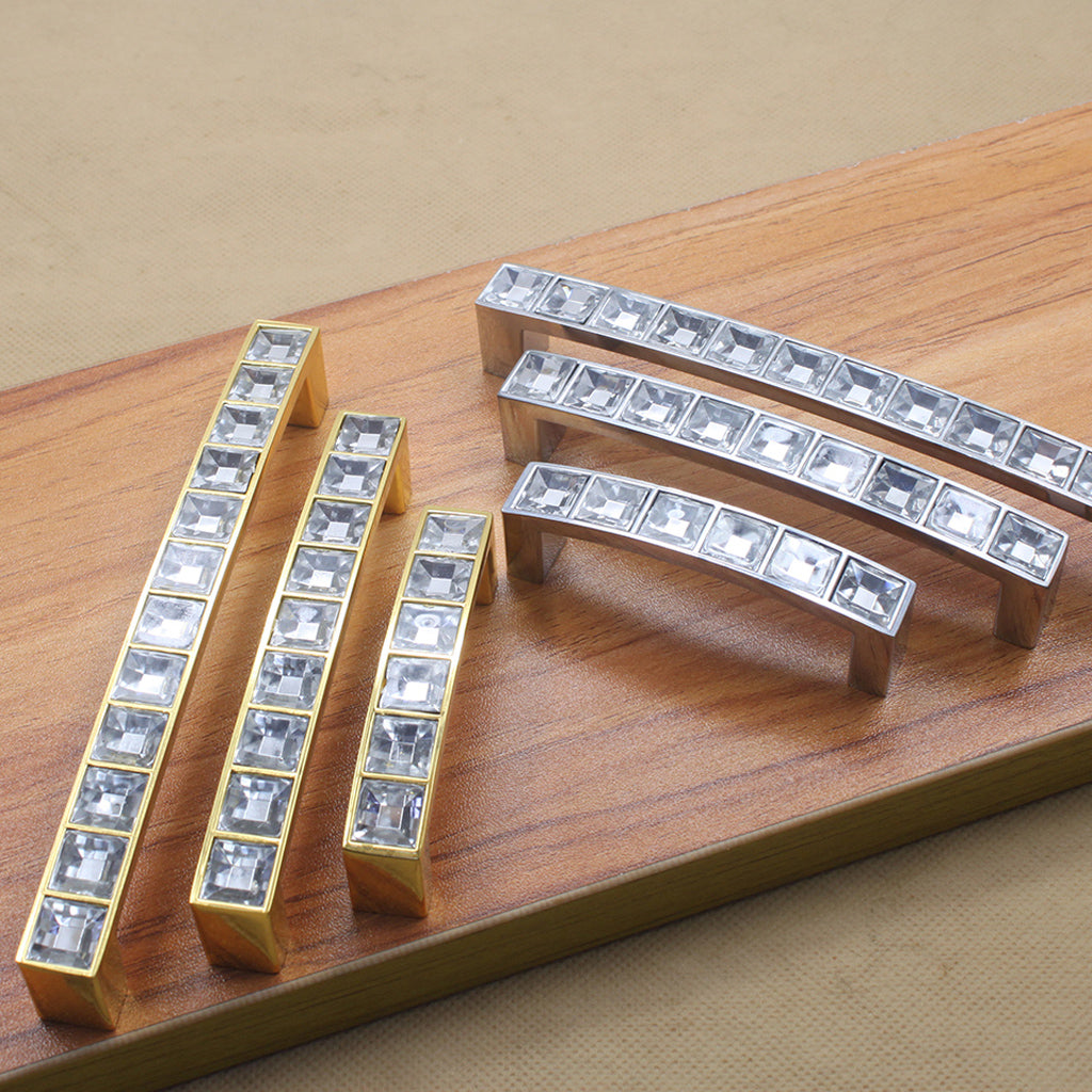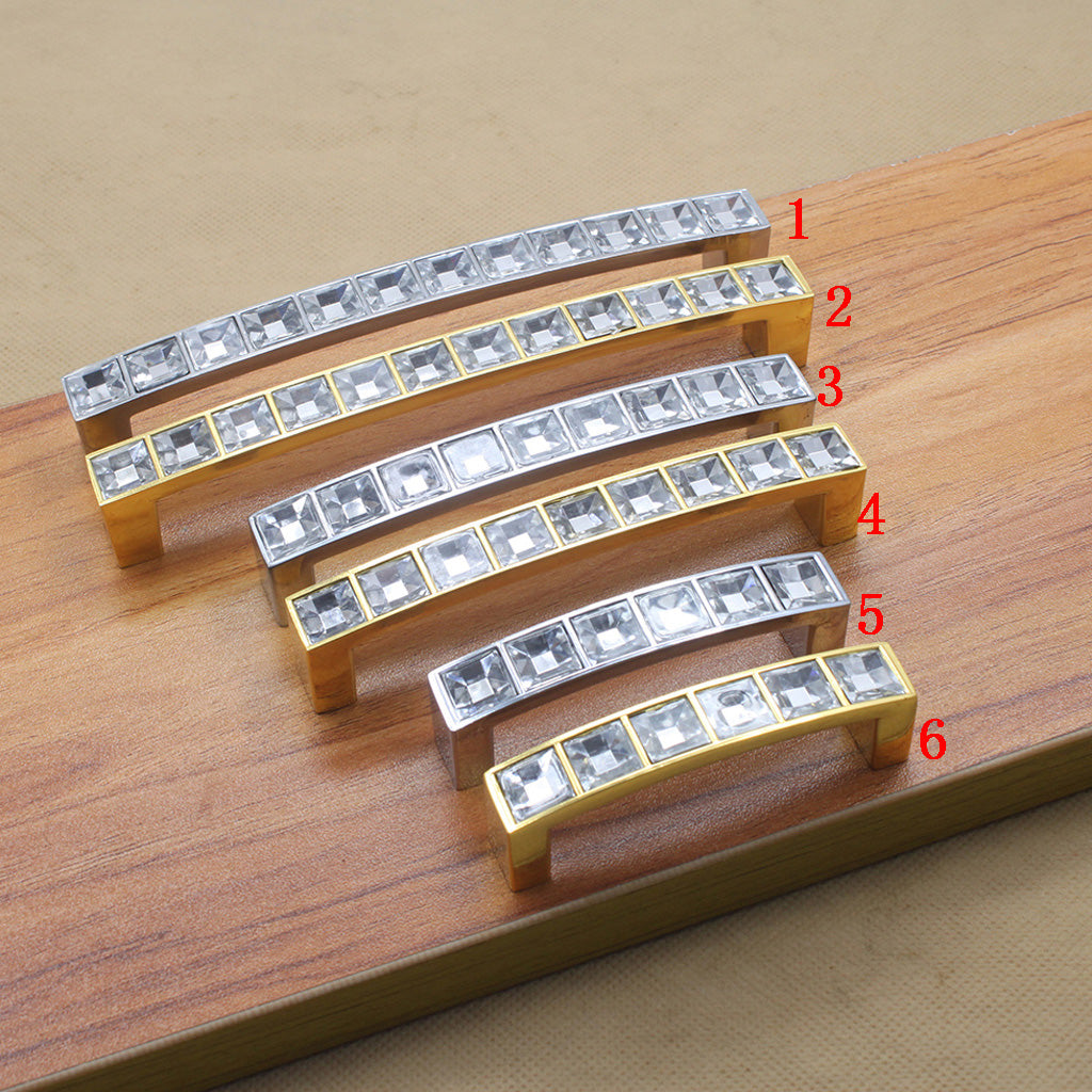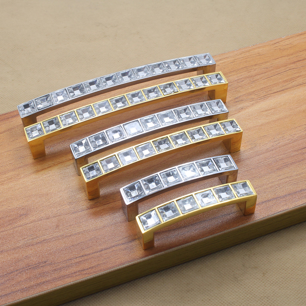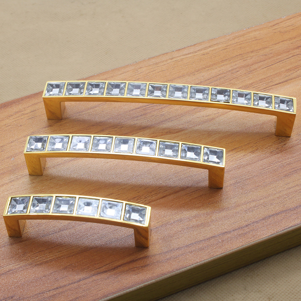 Two-hole Crystal Furniture Handle Cabinet Drawer Wardrob Handle 64mm Pitch Hole Golden