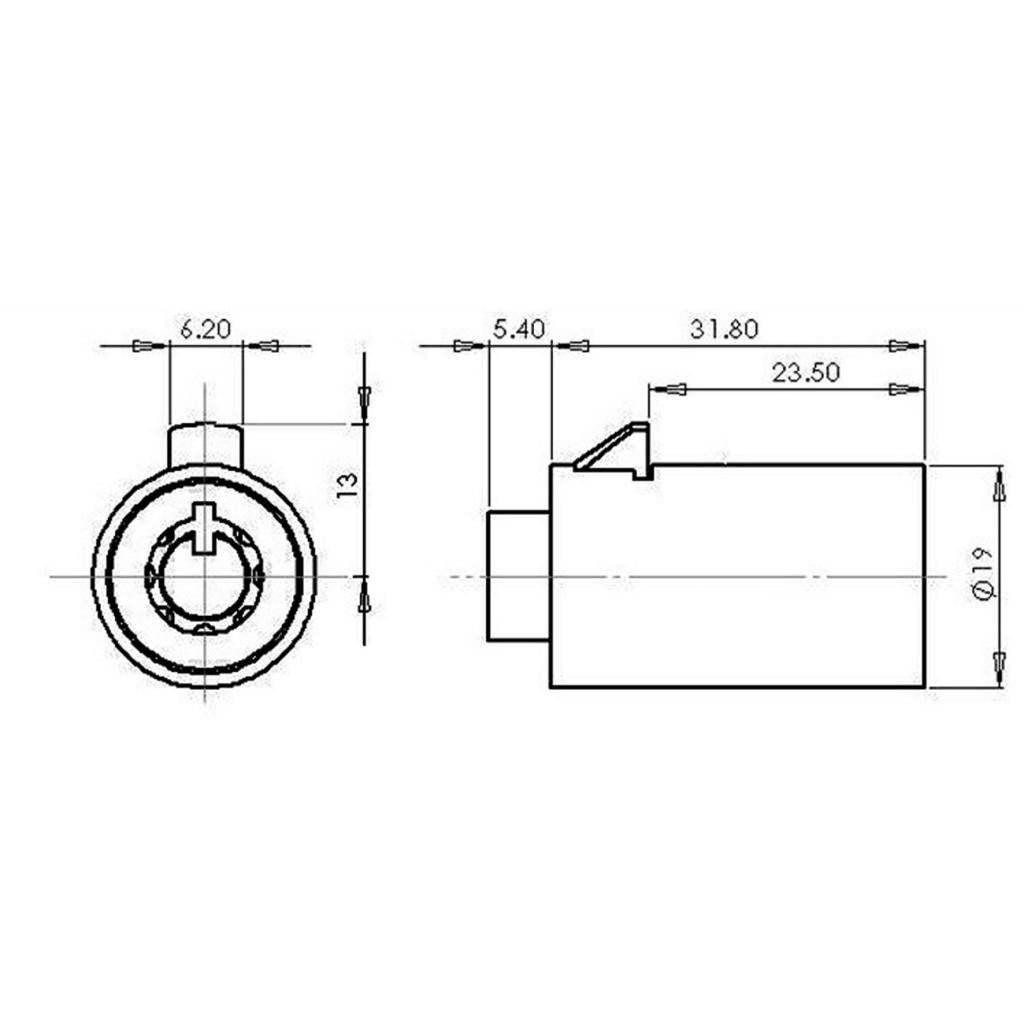 Total length 38mm/1.50inch, diameter 19mm/0.75inch.