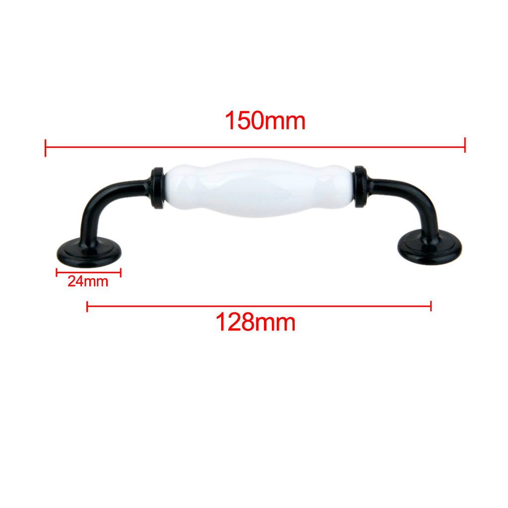 White Ceramic Kitchen Cabinet Cupboard Handles Pull Knob Pitch Hole 128mm