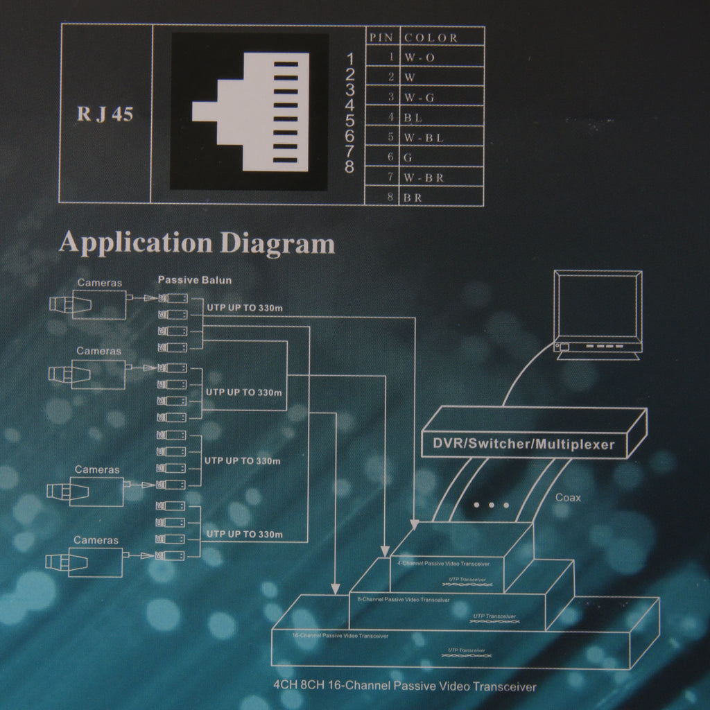 Unshielded Cat-5 or above twisted pair wire (Please use standard Cat-5 or above twisted pair wire. The wire quality will directly affect the transmitted image effect and transmission distance.)
