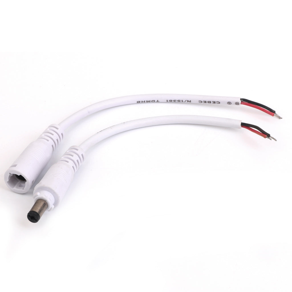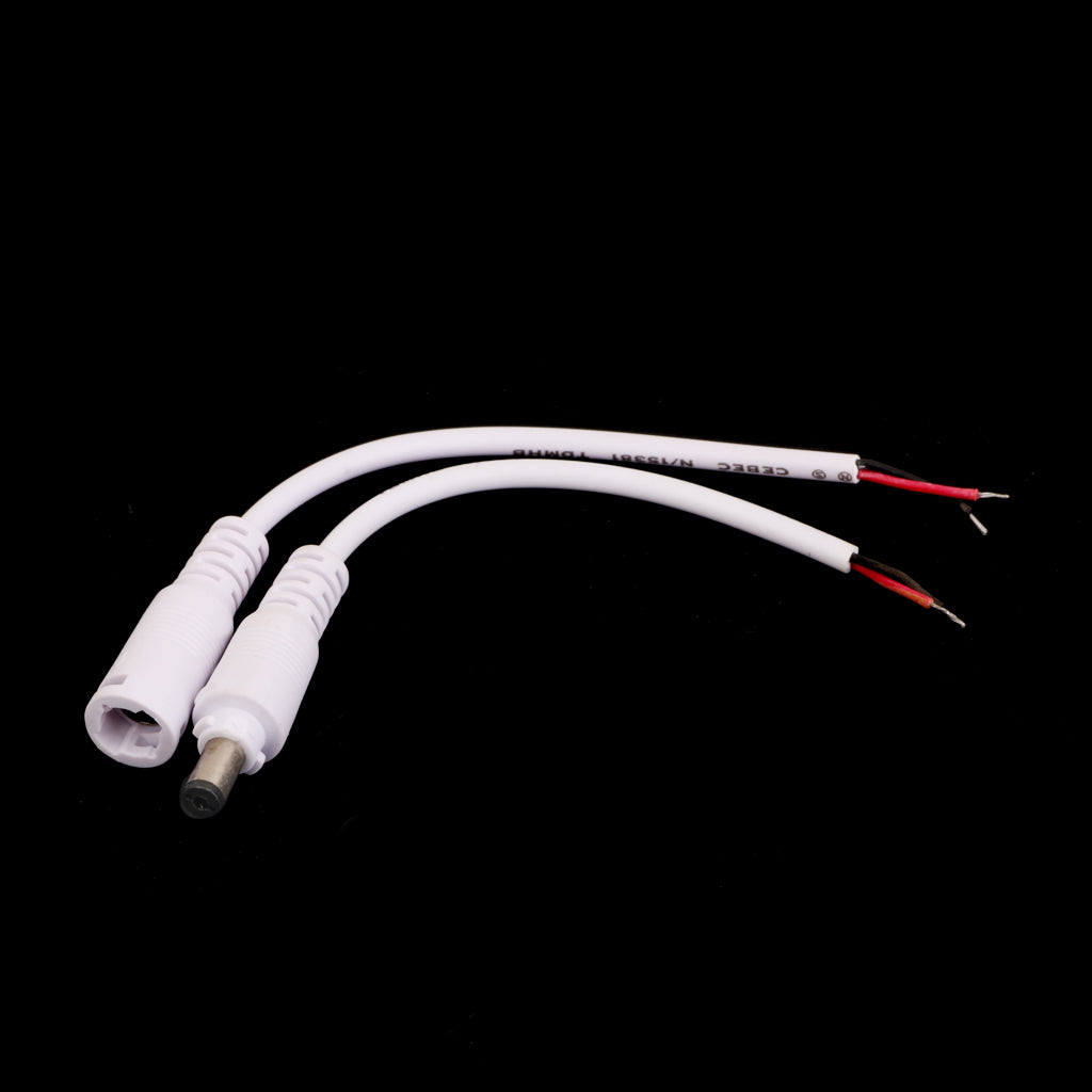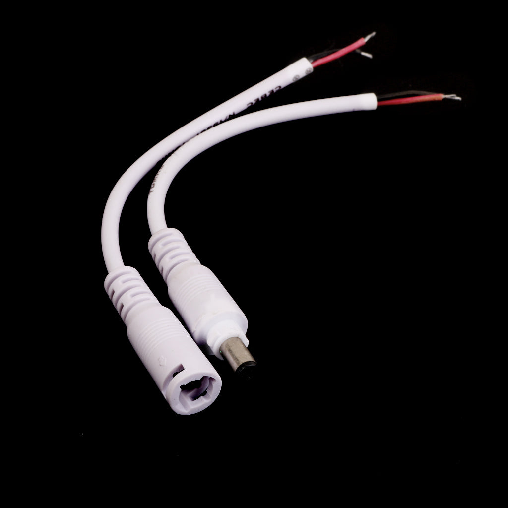 DC 5.5X2.1 Female Male Adapter Cable Wire for CCTV Camera Monitor 2pcs White